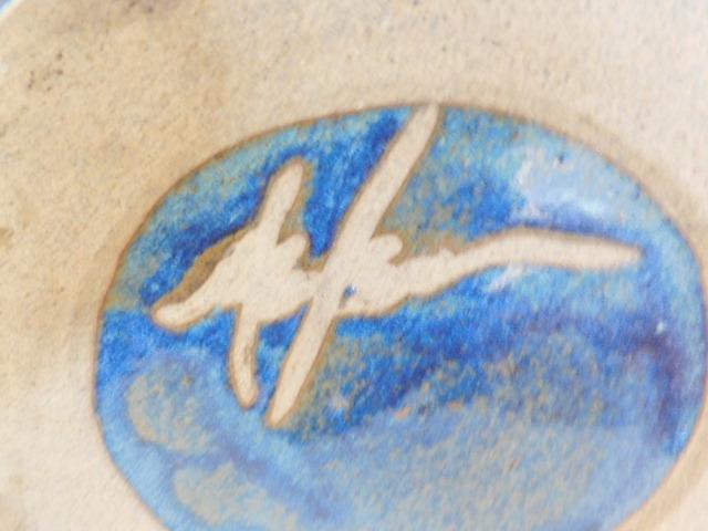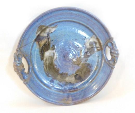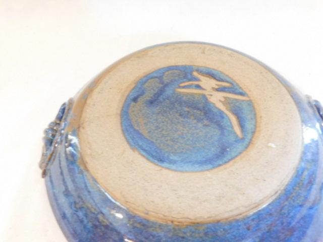 Hand Crafted Studio Art Blue Pottery Bowl Signed By Artist 15"