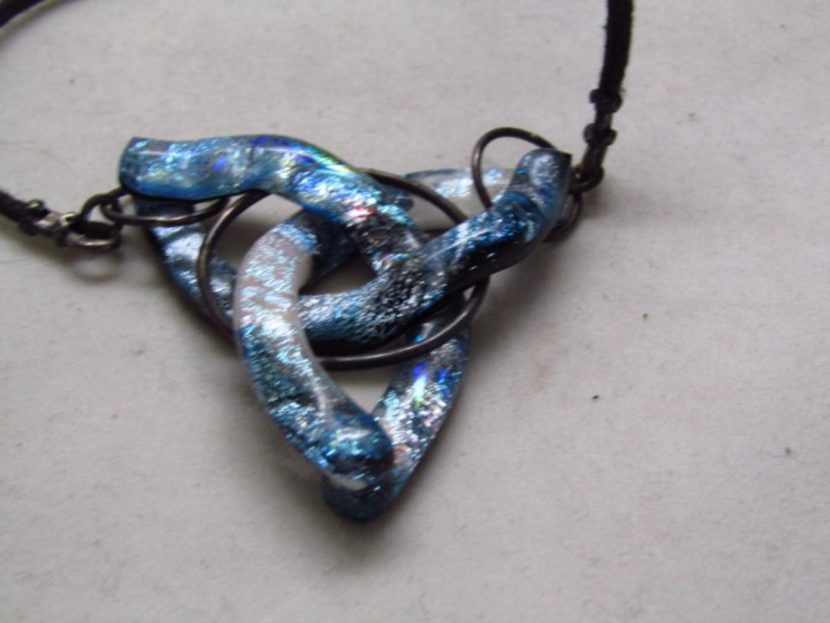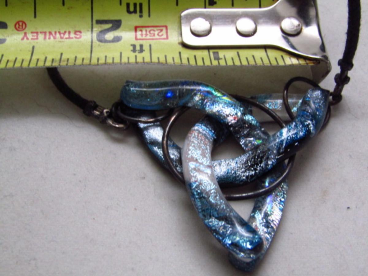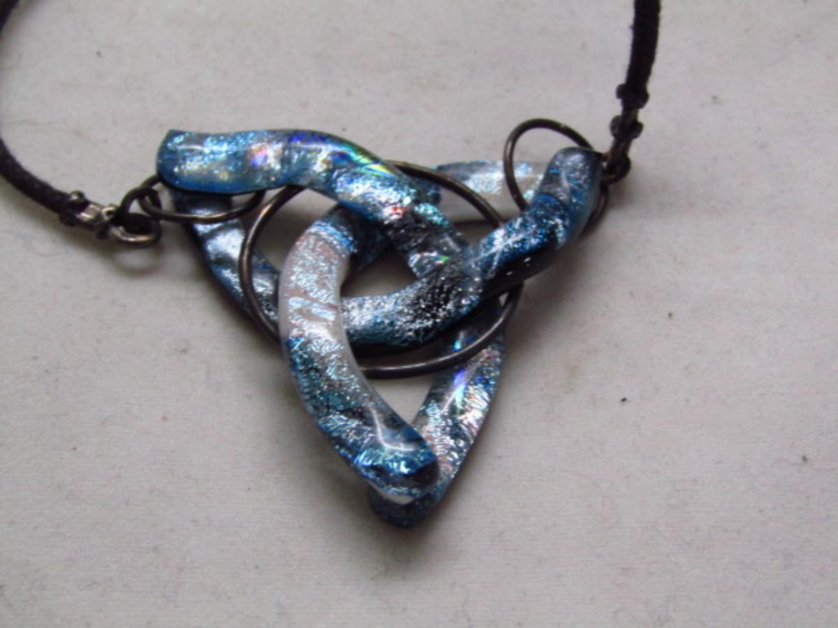 Hand Crafted Three Pointed Celtic Knot Glass Pendant on Cord Necklace- Beautiful Colors! (#7)