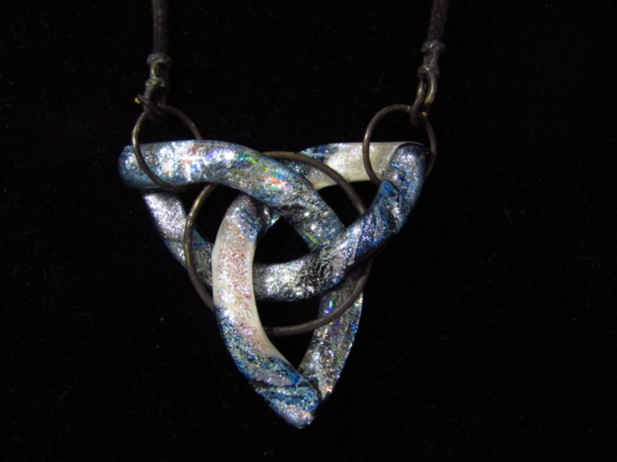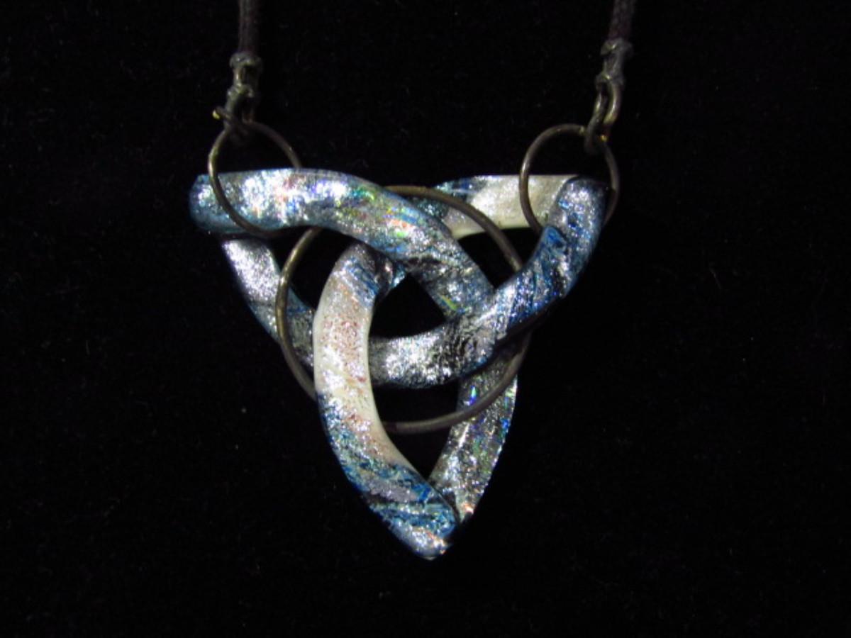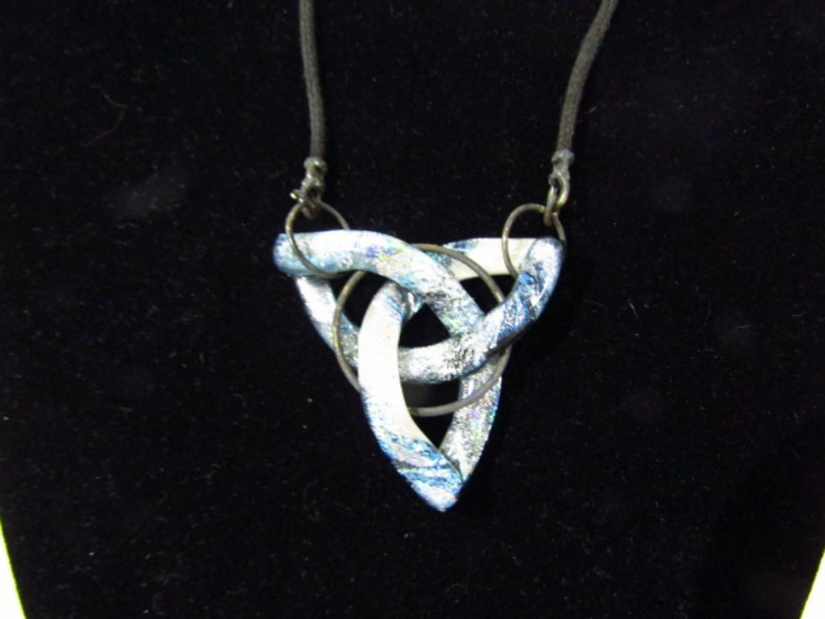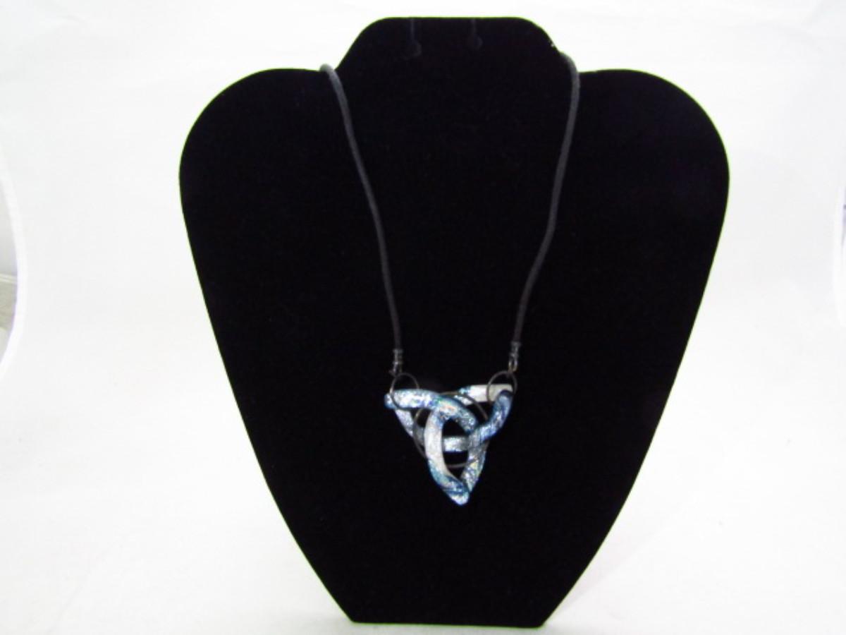 Hand Crafted Three Pointed Celtic Knot Glass Pendant on Cord Necklace- Beautiful Colors! (#7)