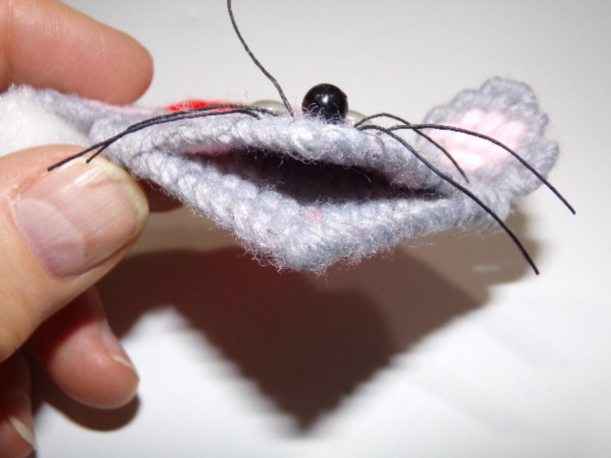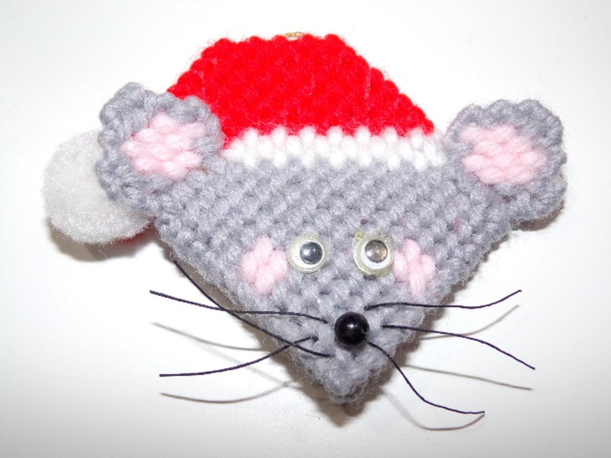 Hand crafted needlepoint mouse face w/open bottom to hold candy, tree ornament