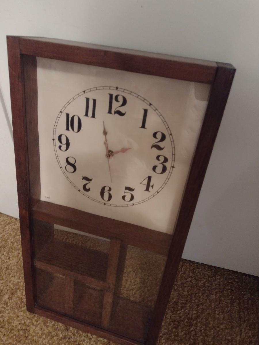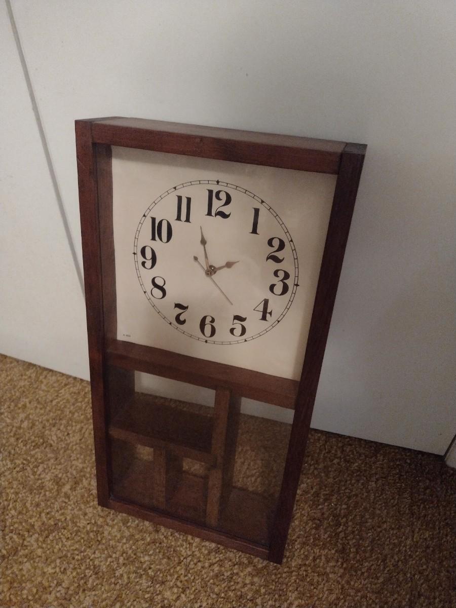 Hand Crafted Wood Framed Display Shelf Wall Clock Battery Operated