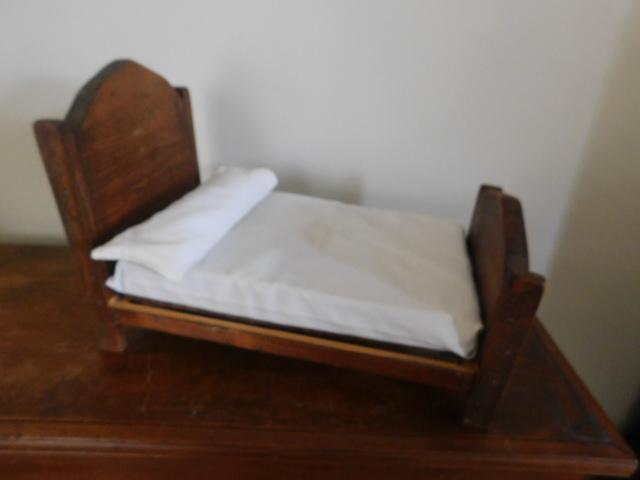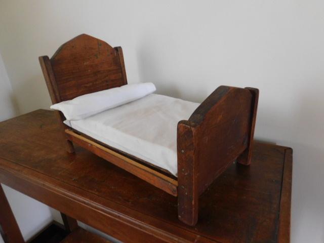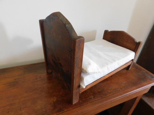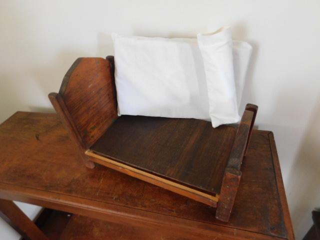 Hand Crafted Wood Large Doll Bed with Mattress and Head Roll 15"