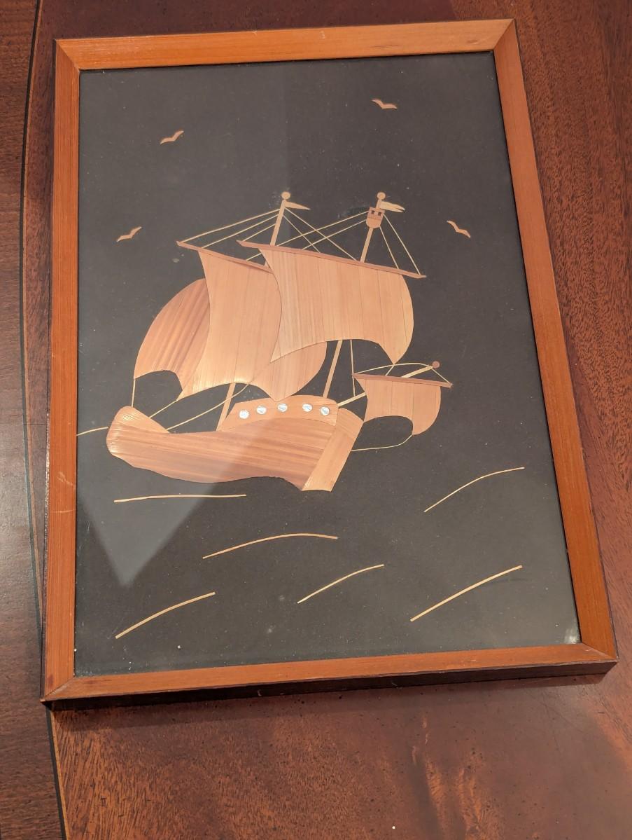 Hand Crafted Wood Sail Boat Approx 8 3/4" x 12 1/2"