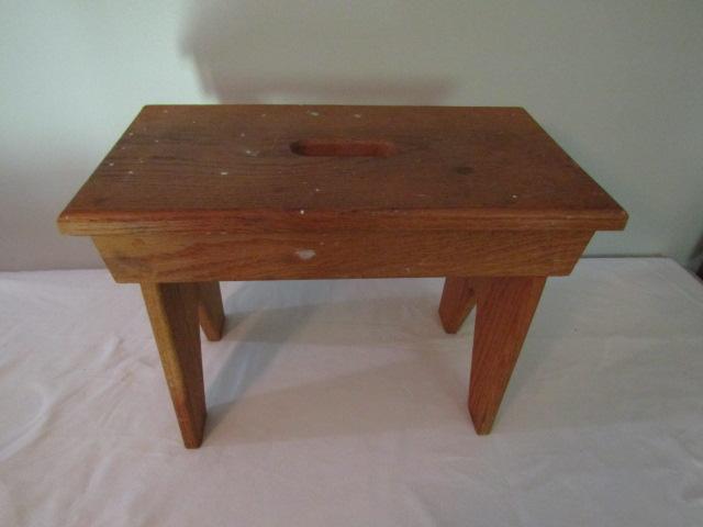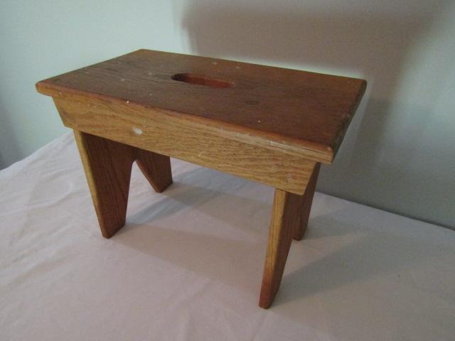 Hand Crafted Wooden Stool- 17" x 9 1/2" x 12"