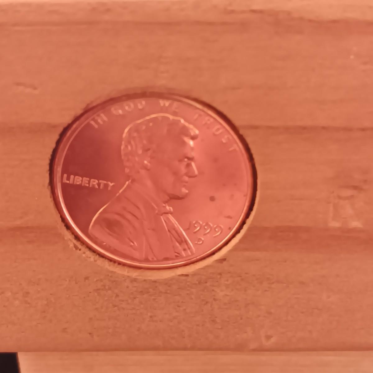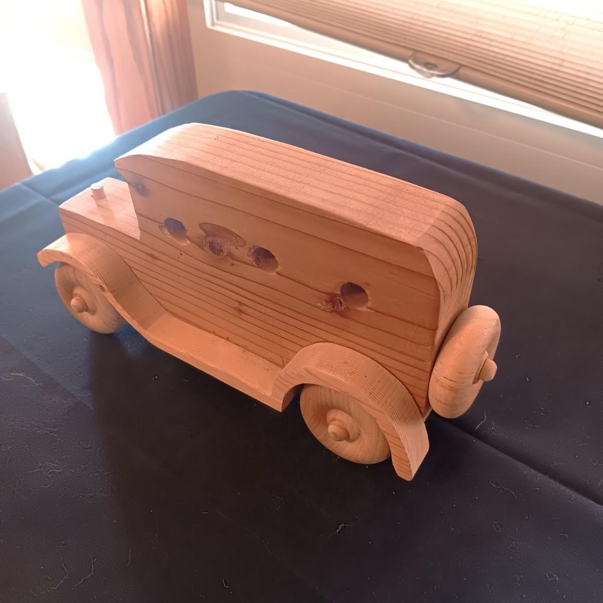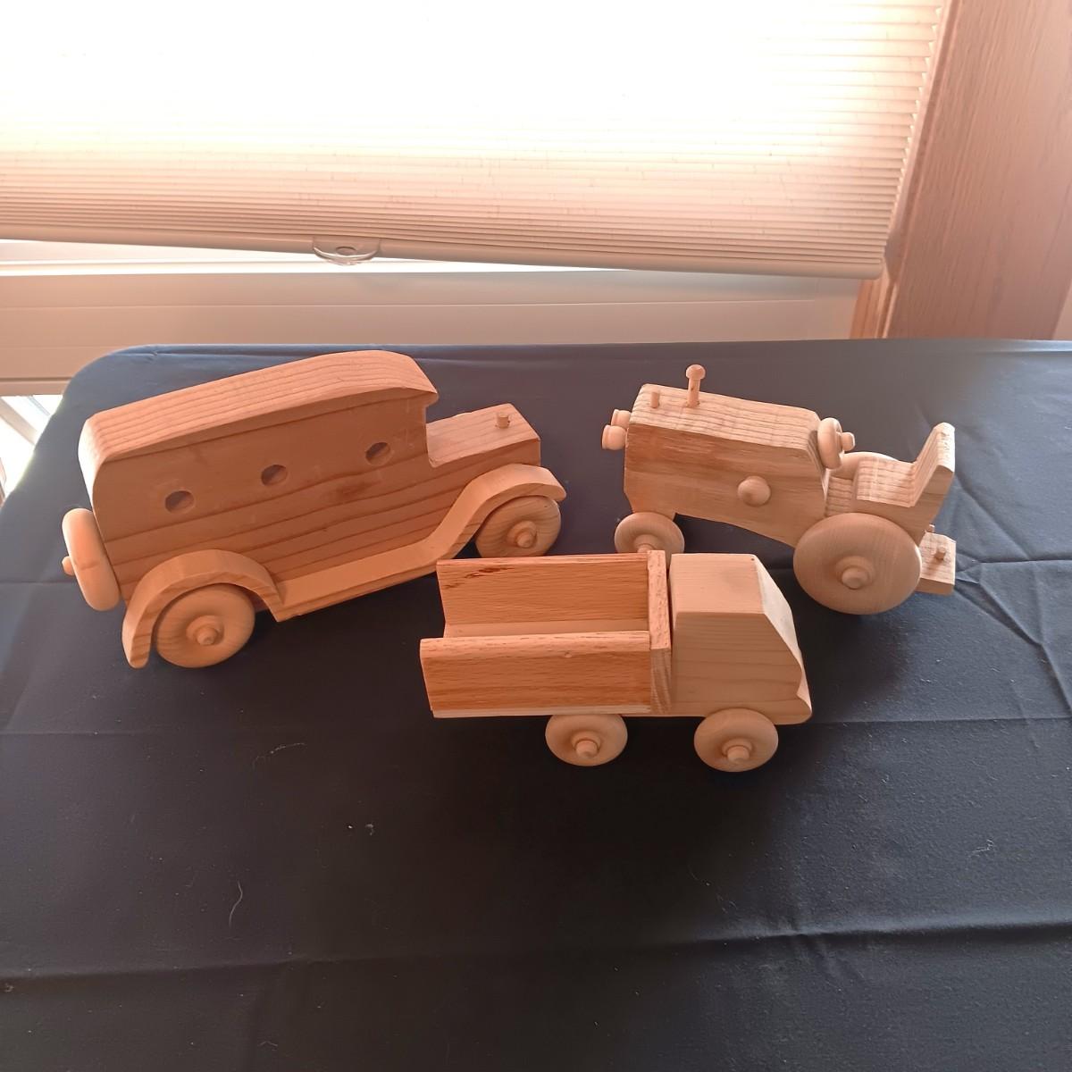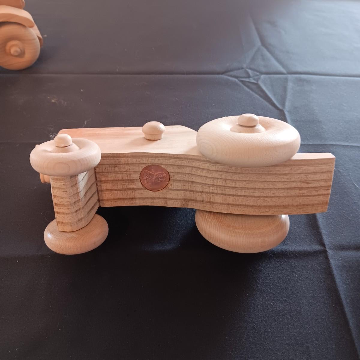HAND CRAFTED WOODEN TOYS WITH AN EMBEDDED PENNY FOR THE YEAR THEY WERE MADE