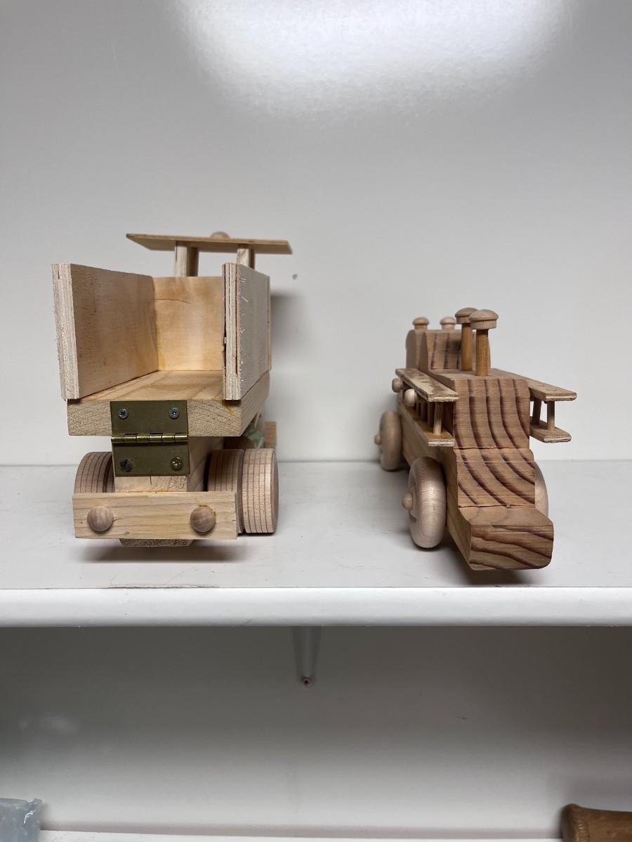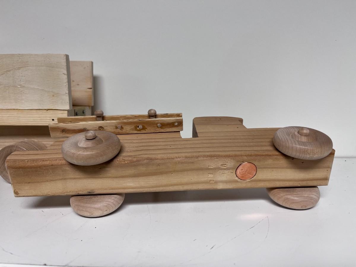 HAND CRAFTED WOODEN TOYS WITH AN EMBEDDED PENNY FOR DATE MADE