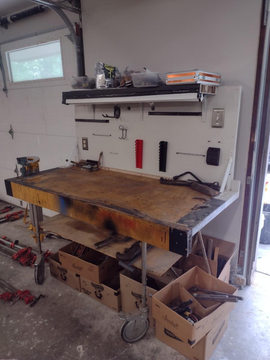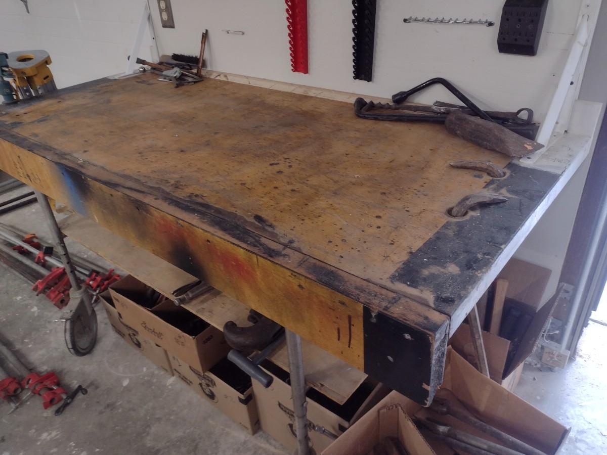Hand Crafted Worktable on Castors (No Contents)