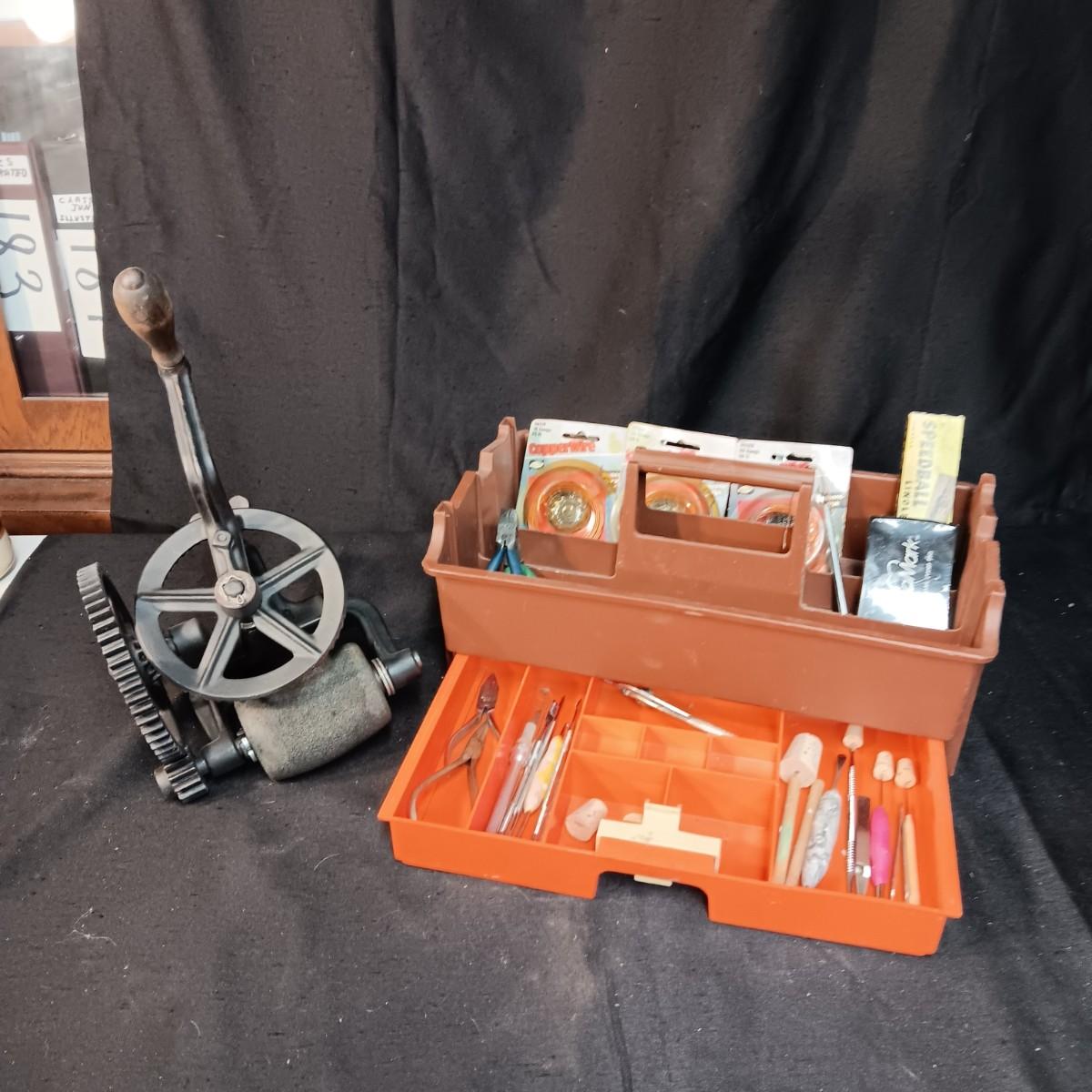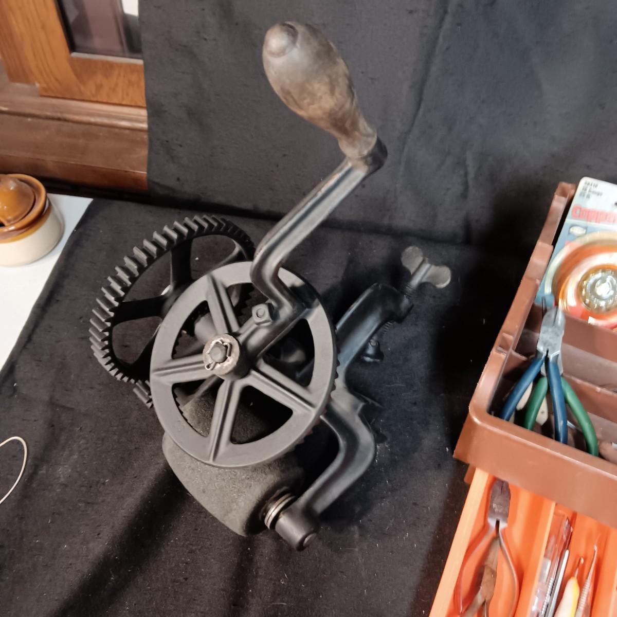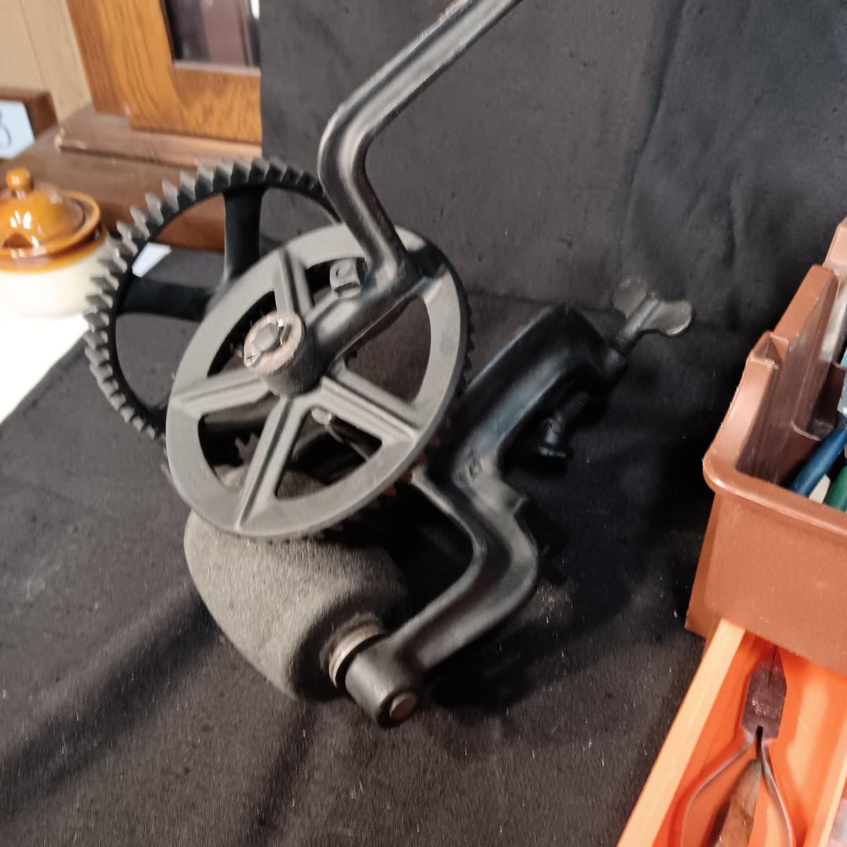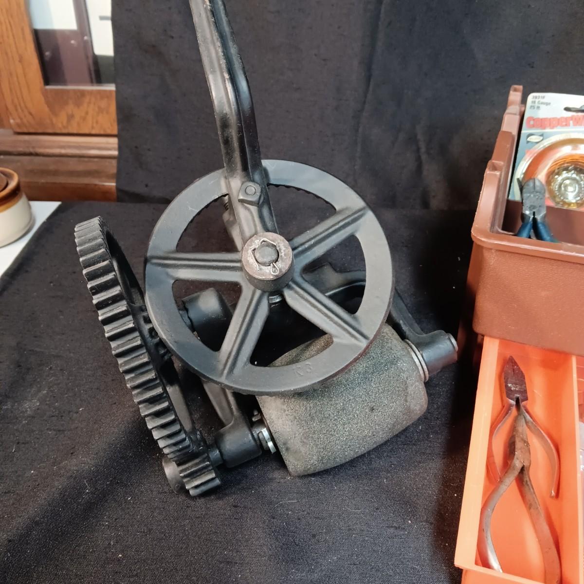 HAND CRANK BENCH GRINDER PLUS SMALLER HAND TOOLS