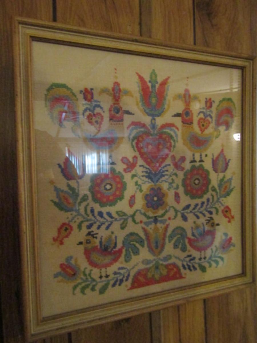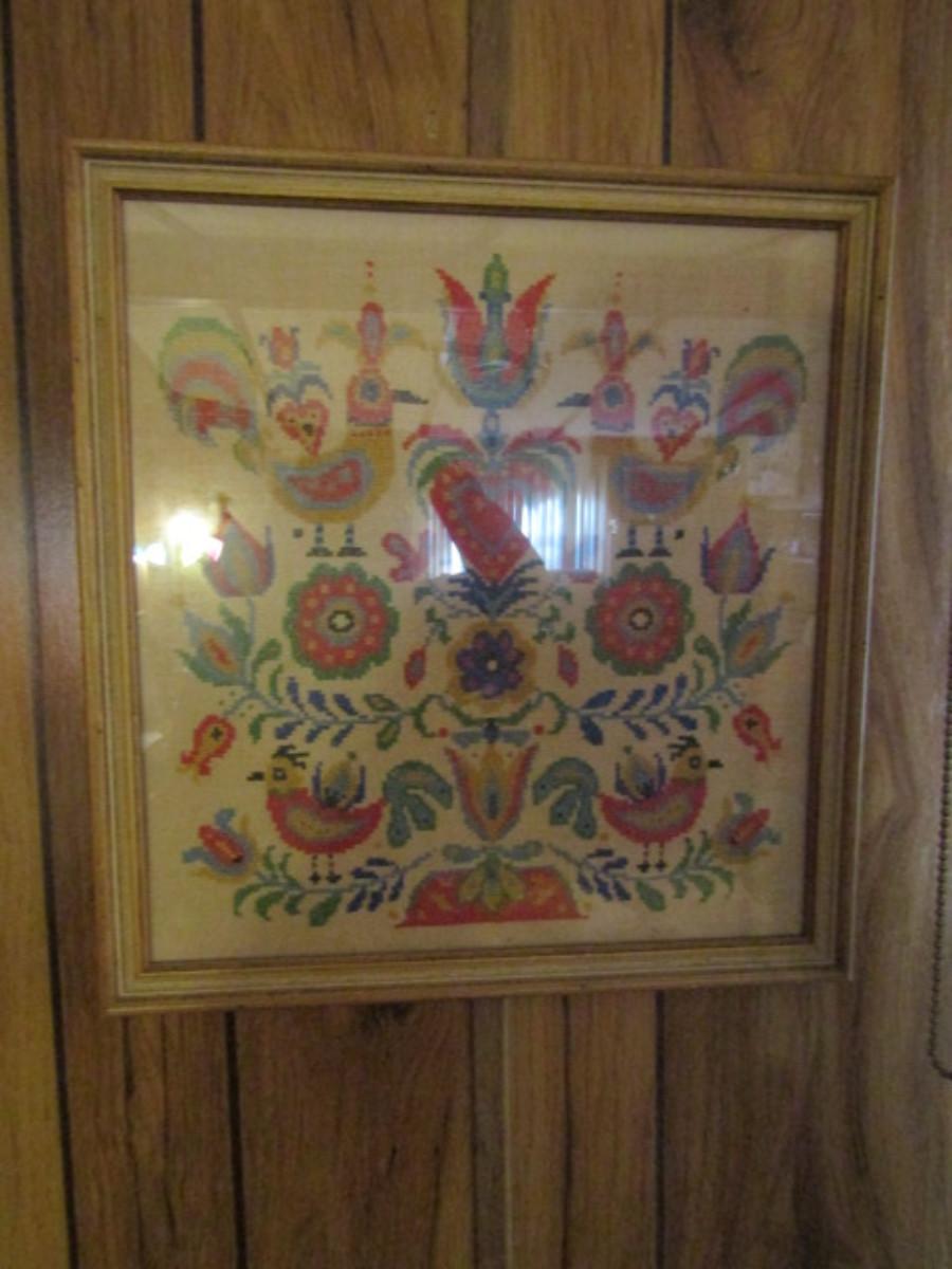 Hand Created Needlework- Framed Under Glass- Approx 17" x 18"