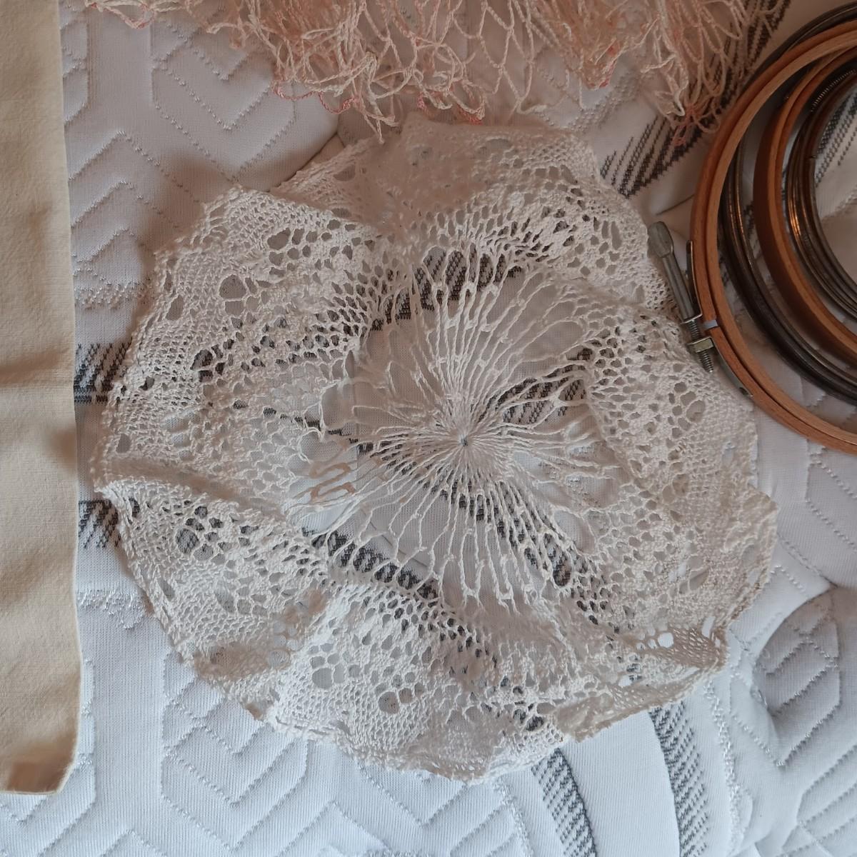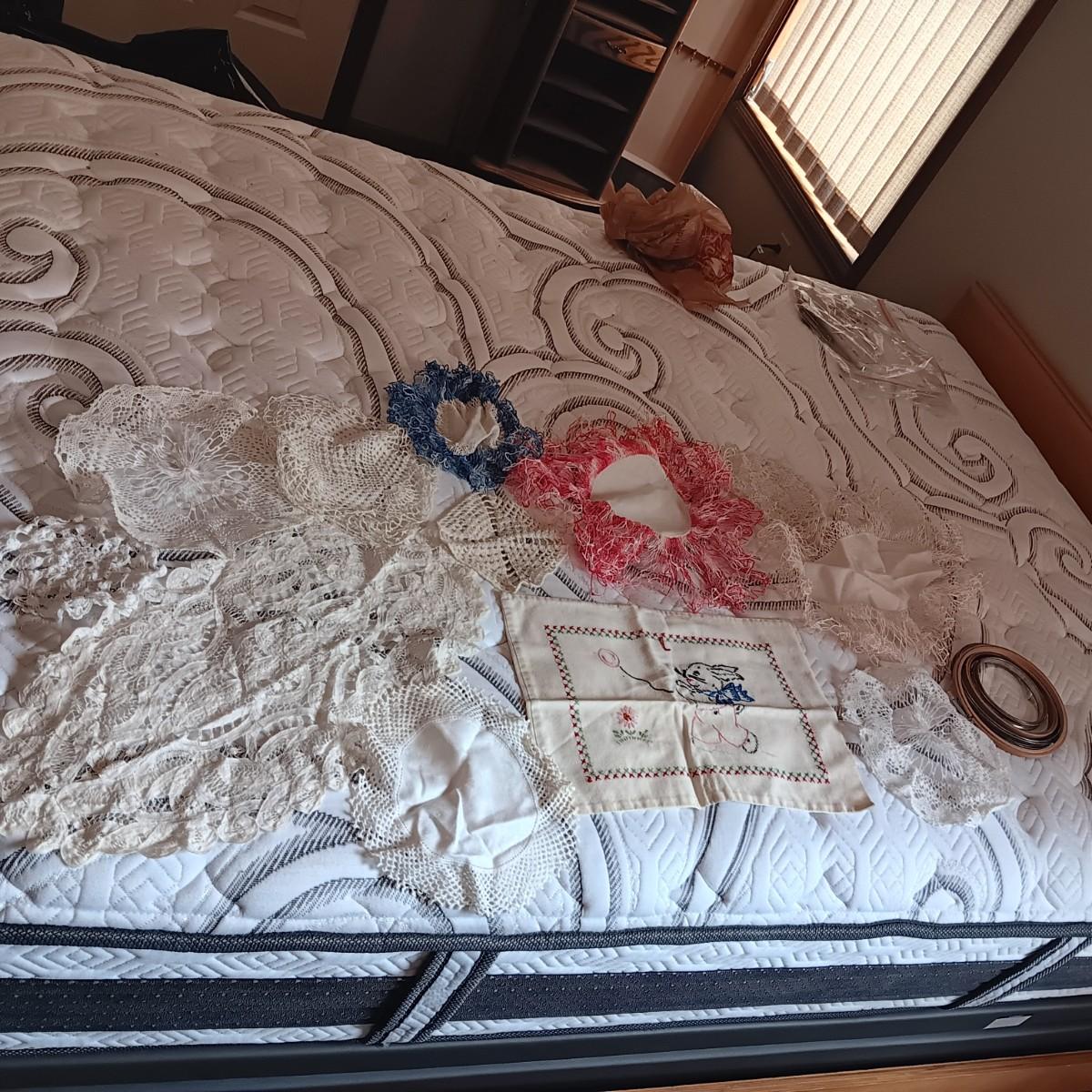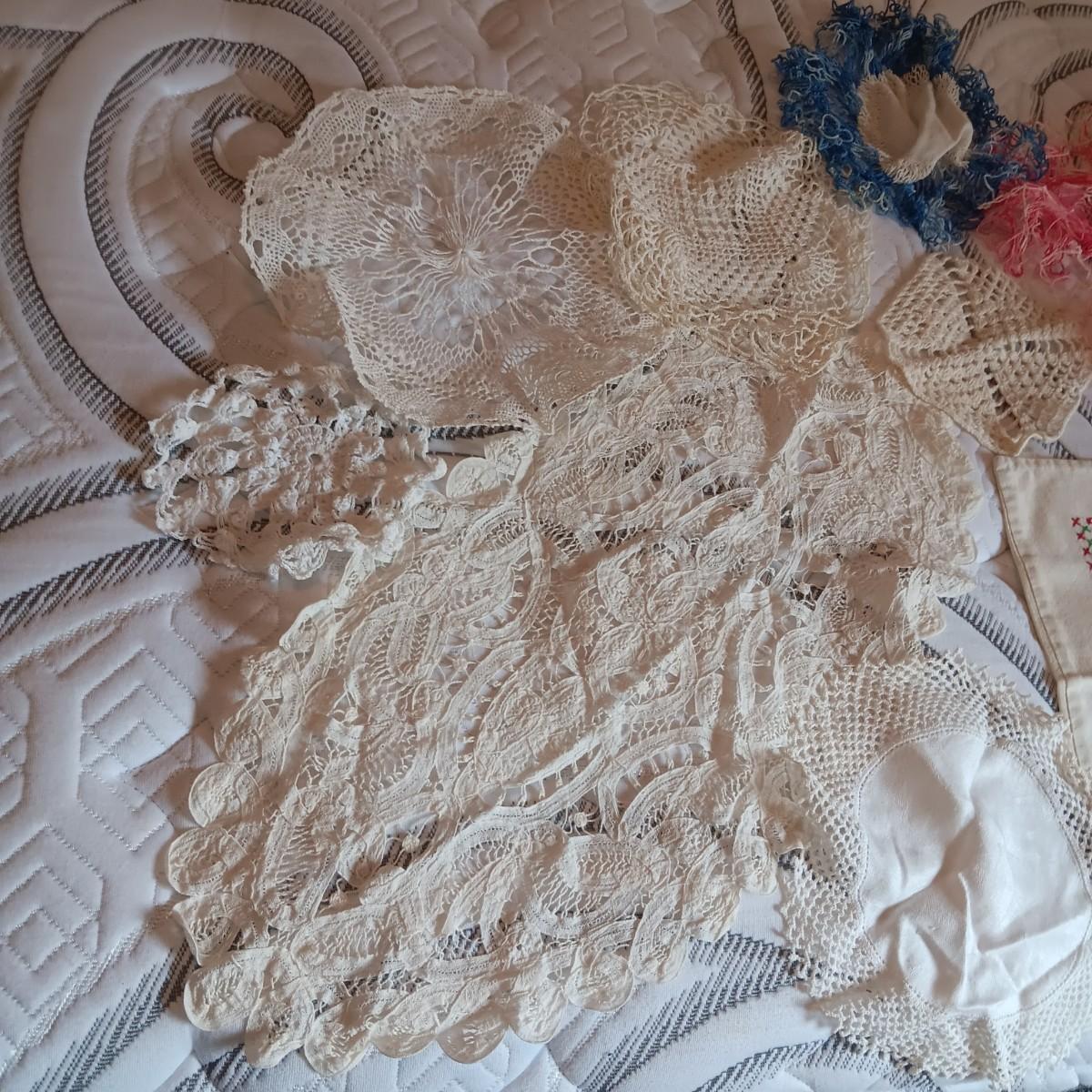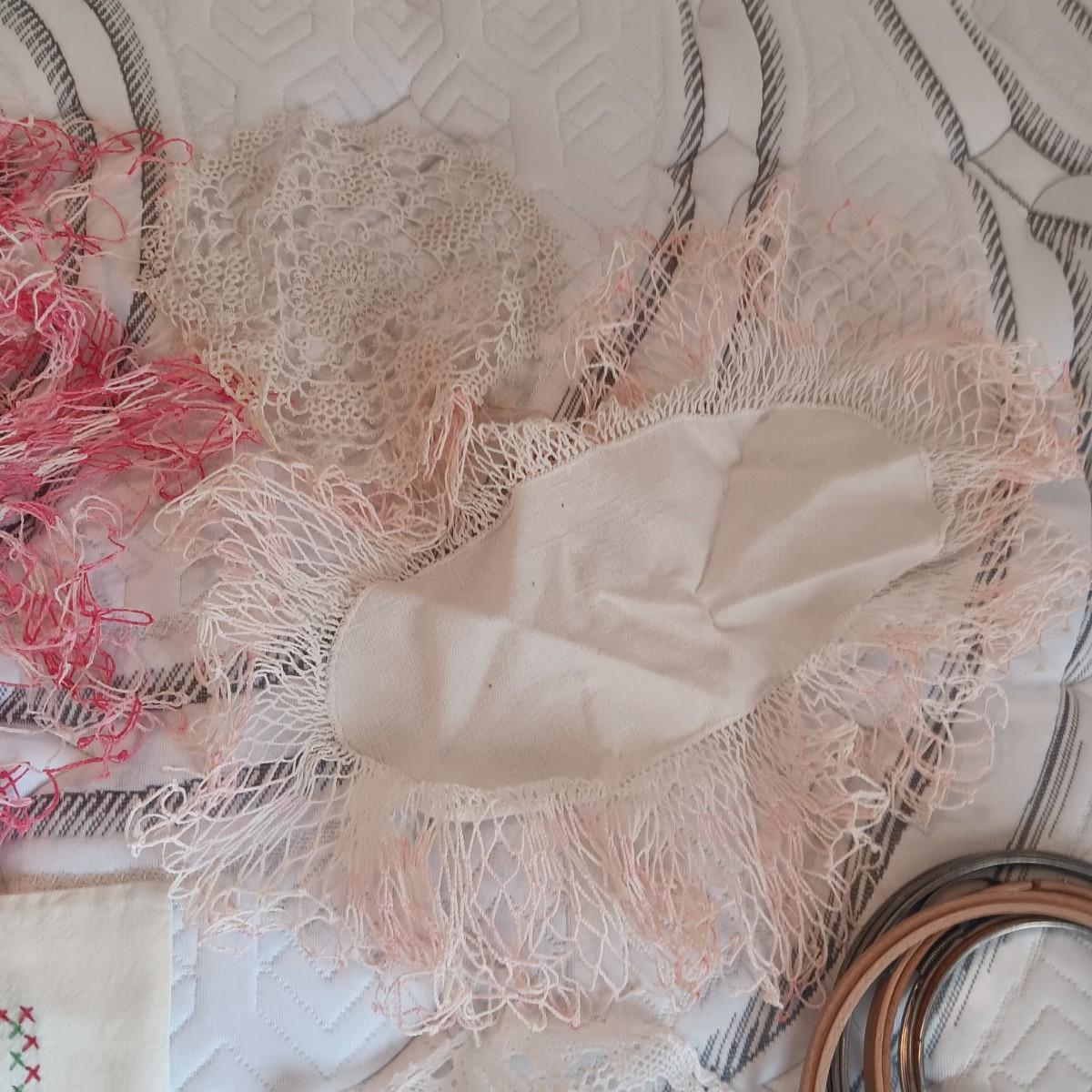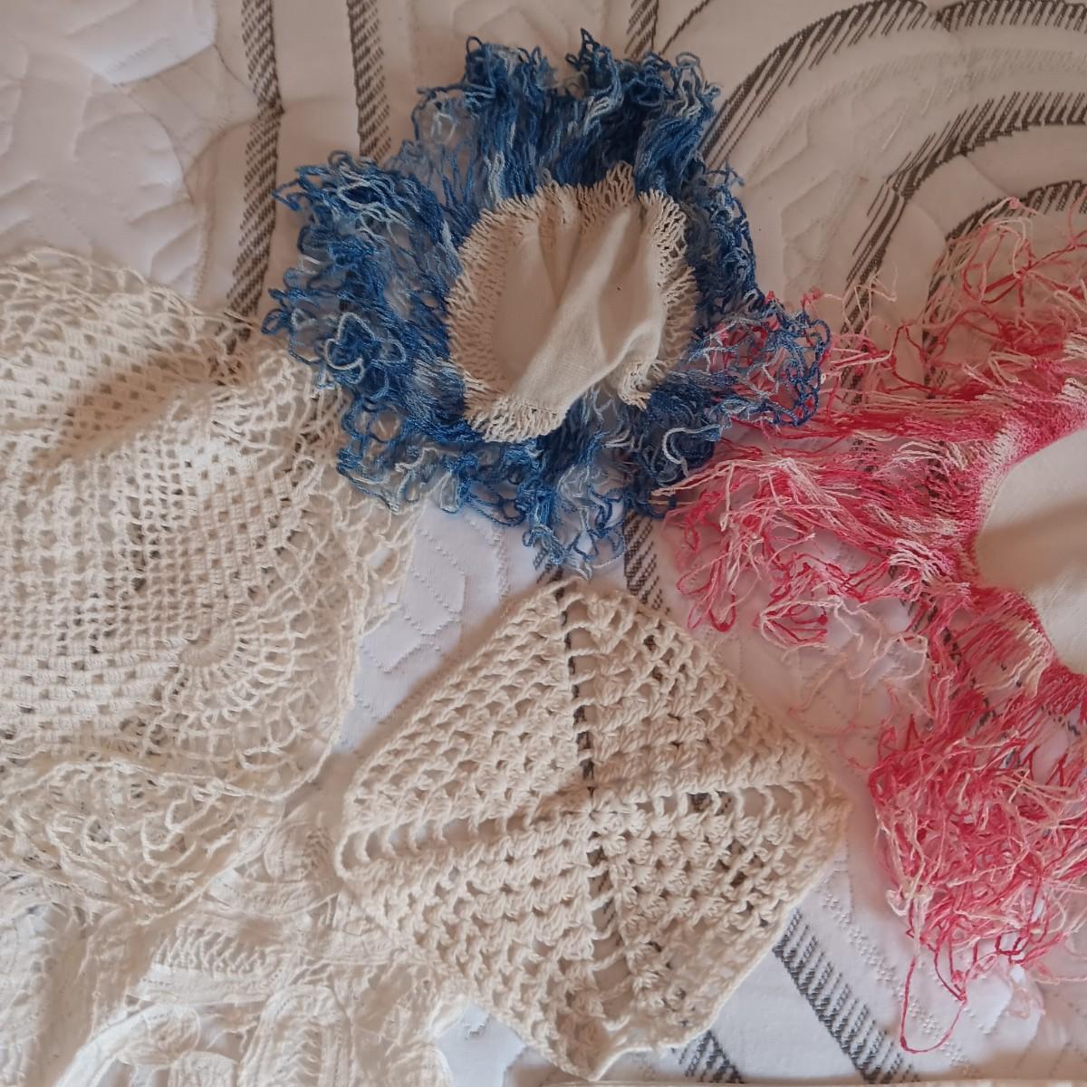 HAND CROCHETED DOILIES AND HAND EMBROIDERED CLOTH