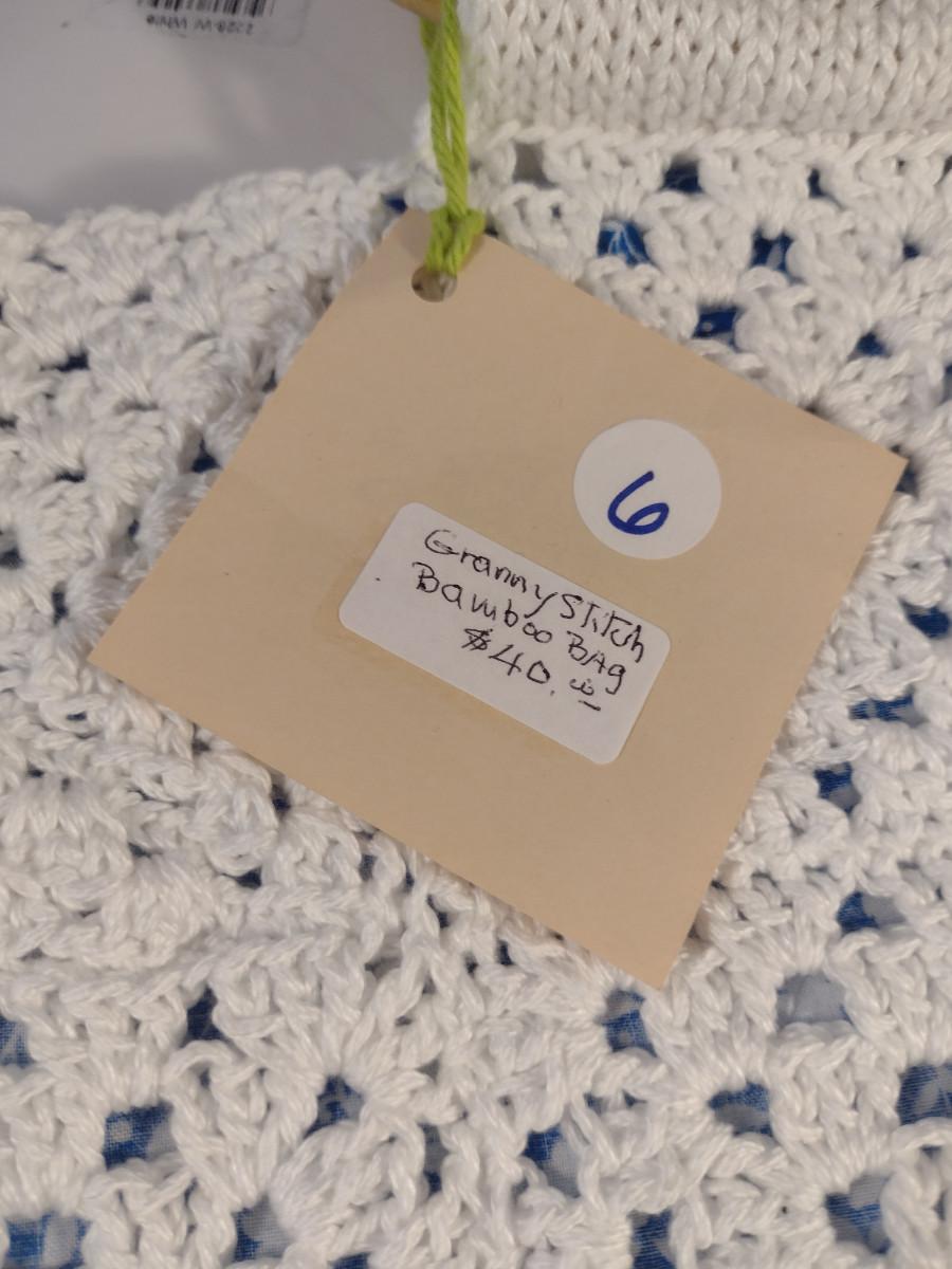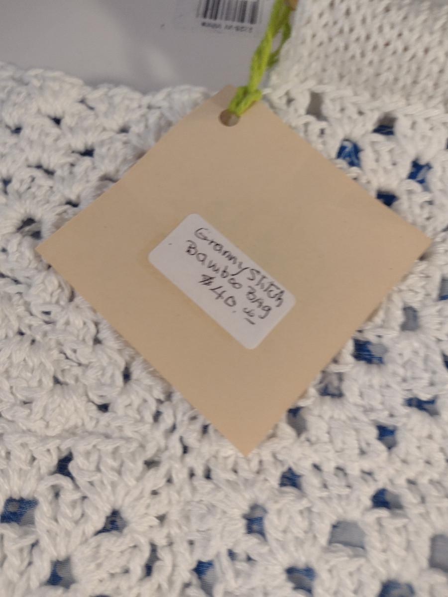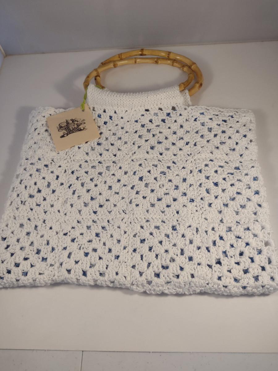 Hand Crocheted 'Granny Stitch' Bag with Bamboo Handles- Approx 15" x 12" (#6)