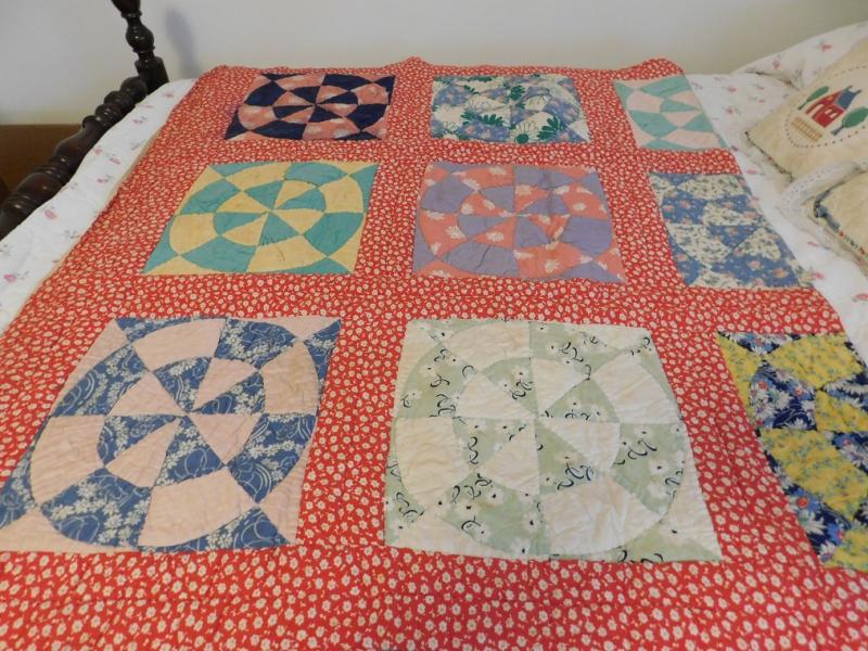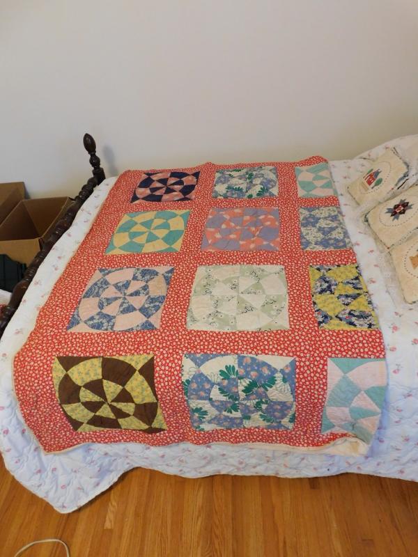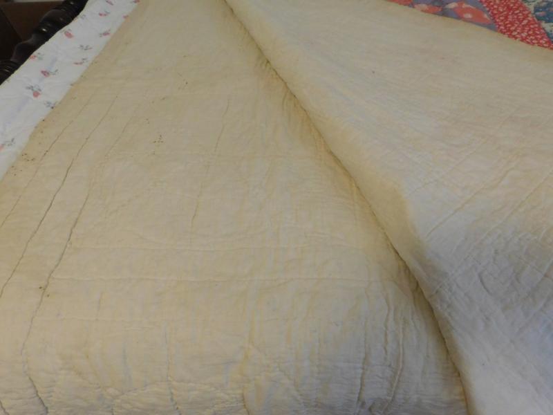 Hand Cut and Sewn Full Size Quilt may need cleaning.