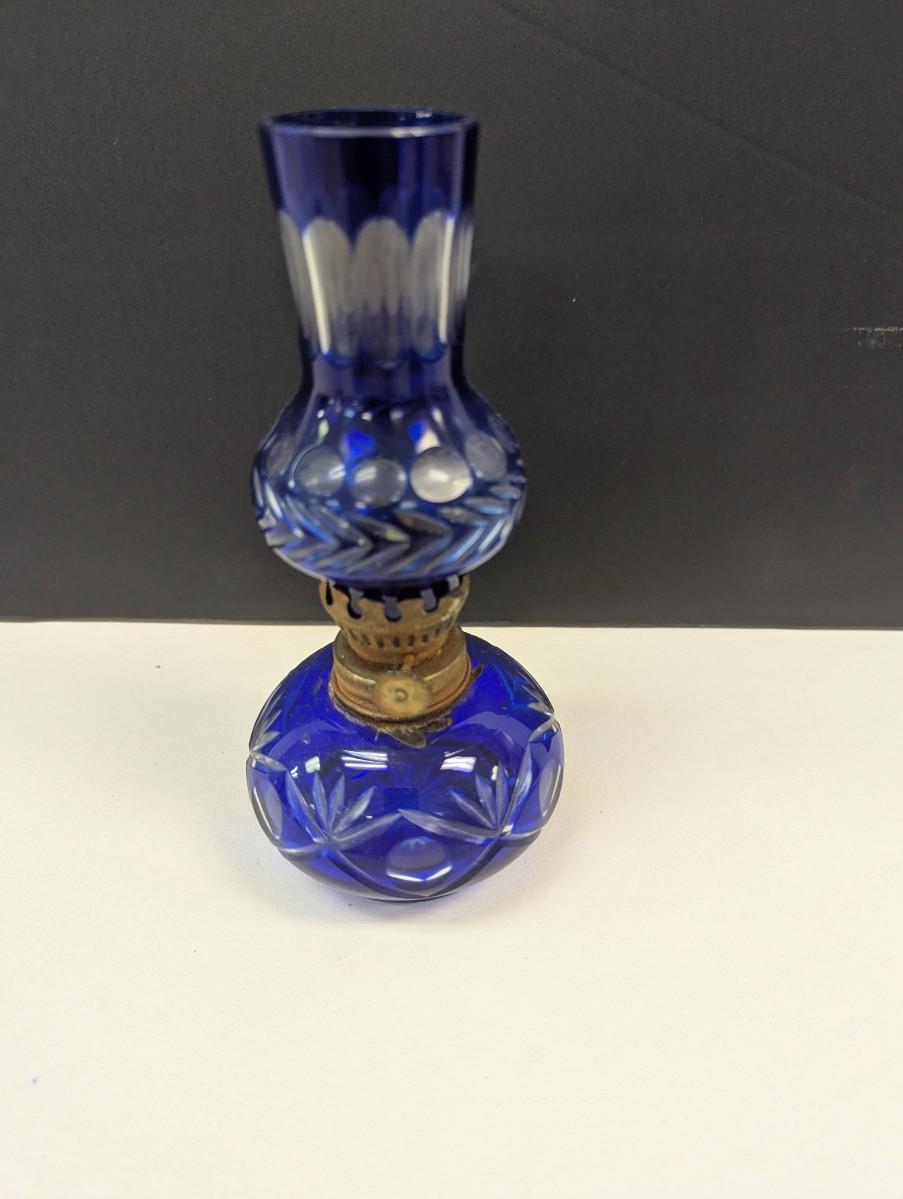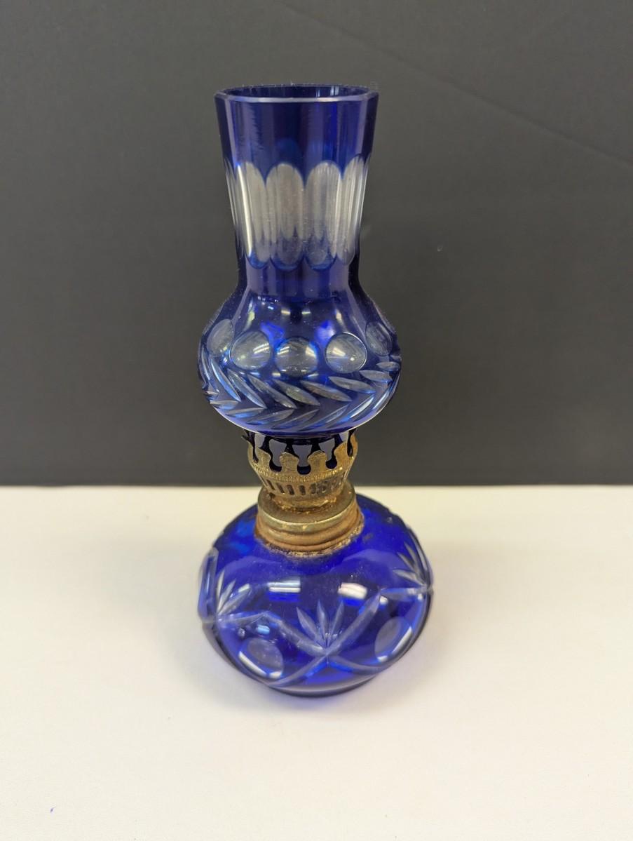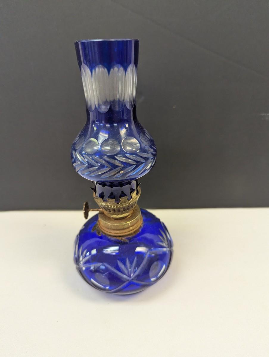 Hand Cut Bohemian Style Crystal Cobalt Blue Oil Lamp #2