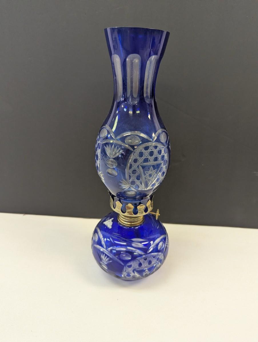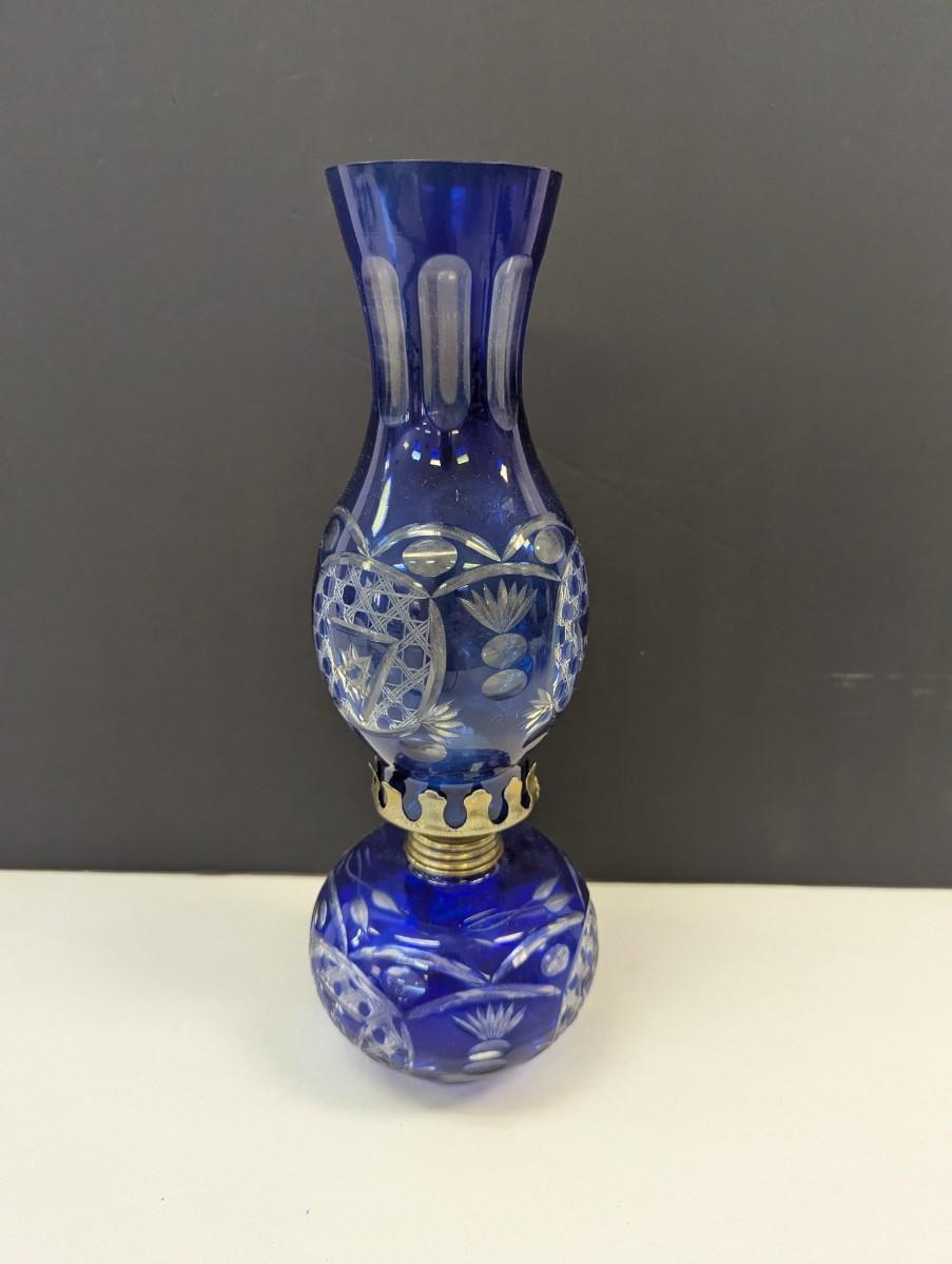 Hand Cut Bohemian Style Crystal Cobalt Blue Oil Lamp Base #1