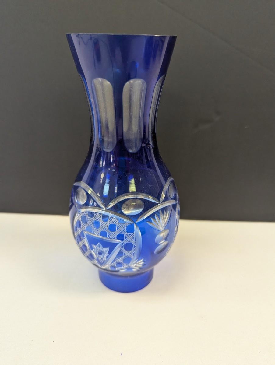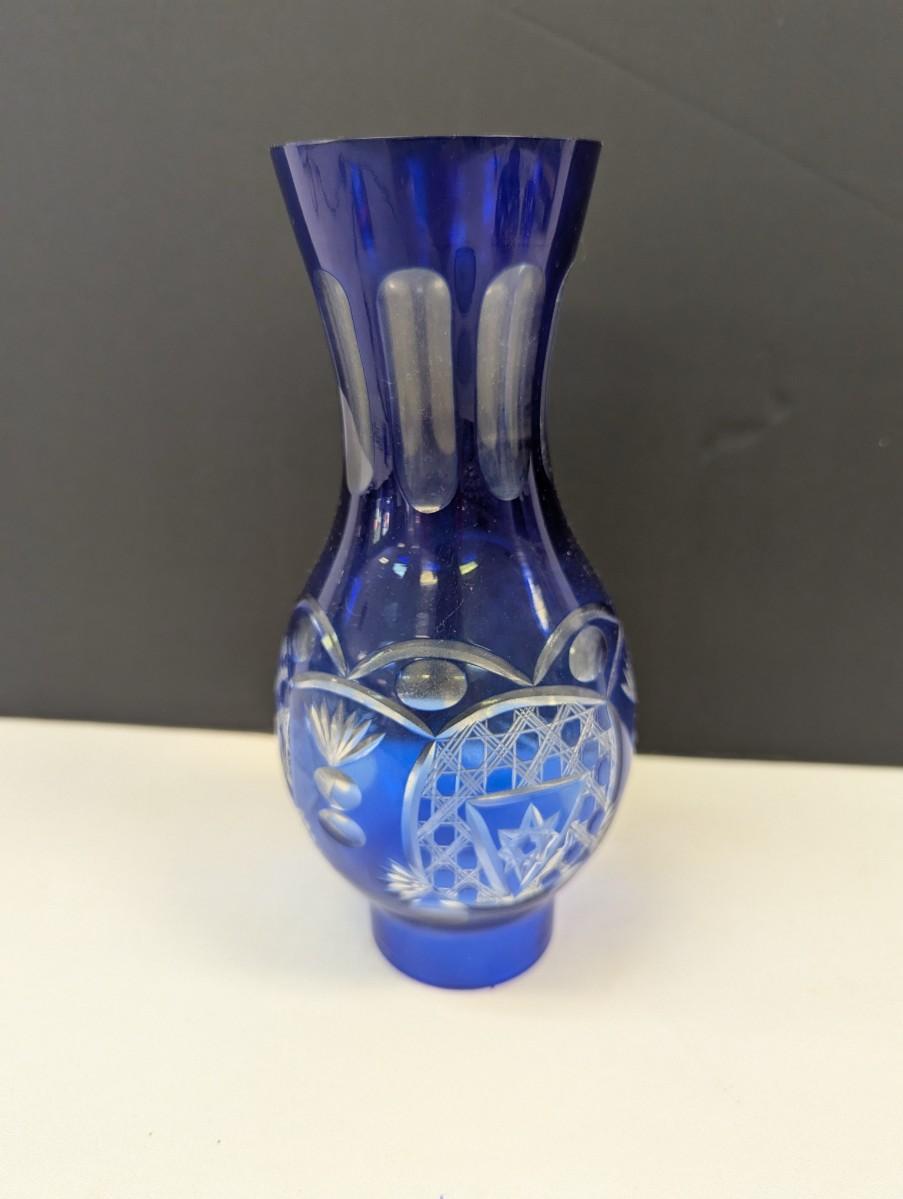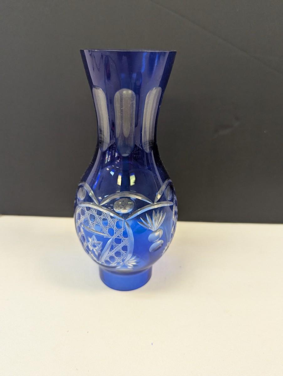 Hand Cut Bohemian Style Crystal Cobalt Blue Vase