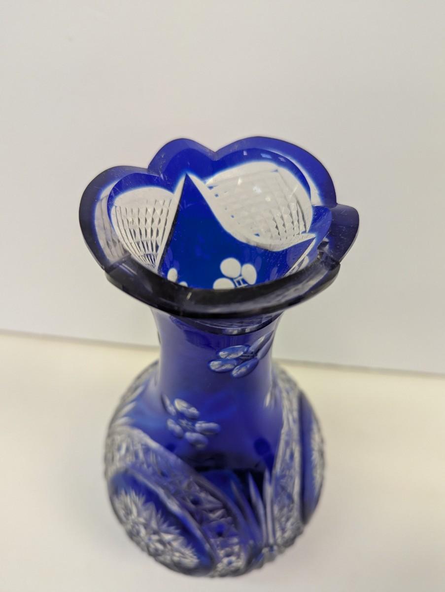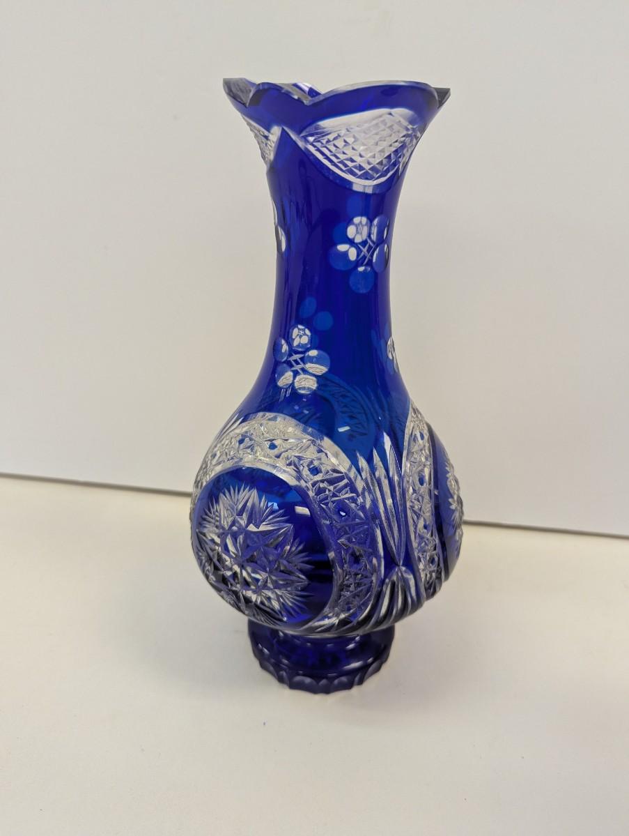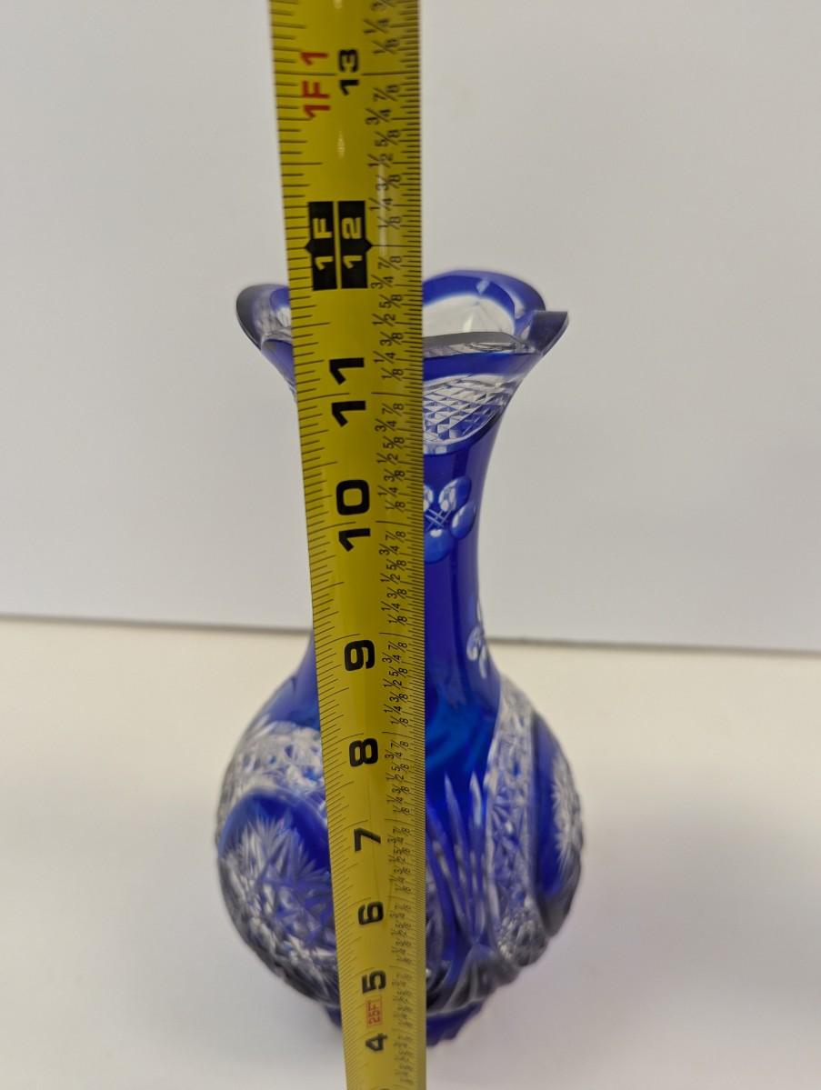 Hand Cut Bohemian Style Crystal Cobalt Blue Vase #2