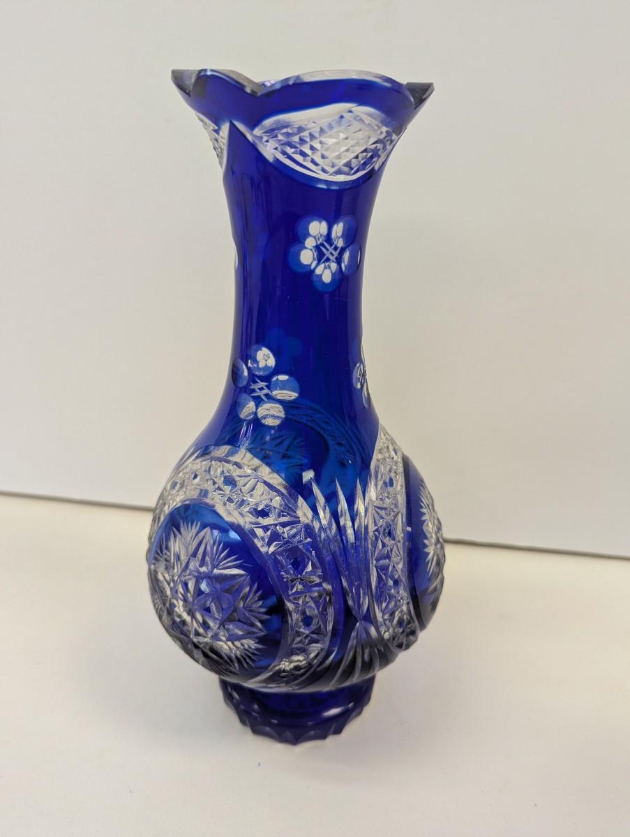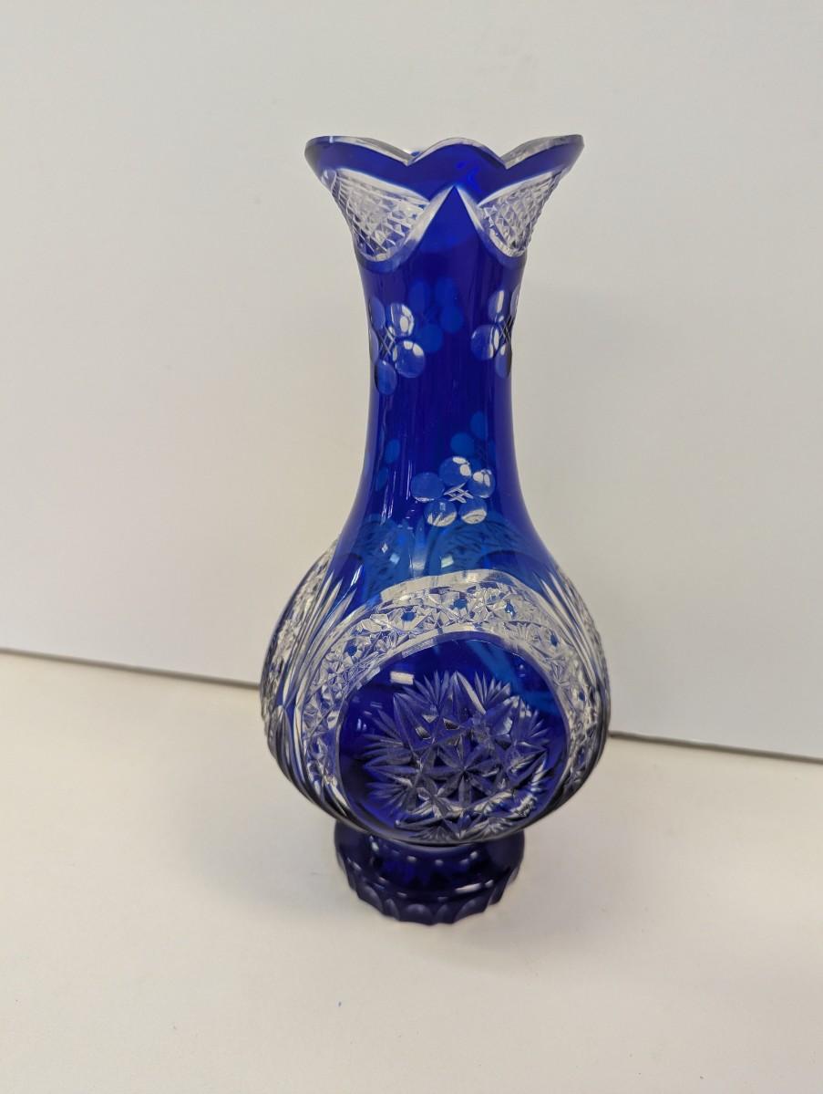Hand Cut Crystal Cobalt Blue Vase