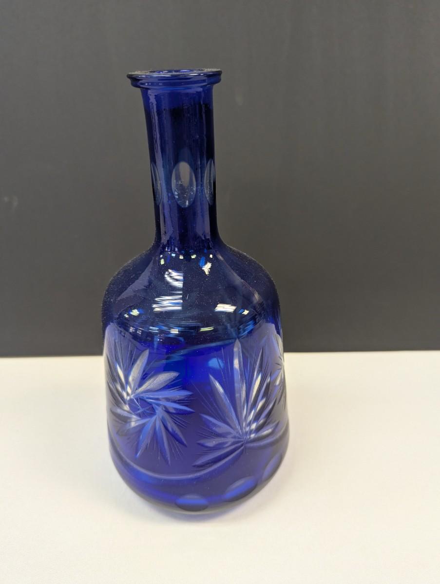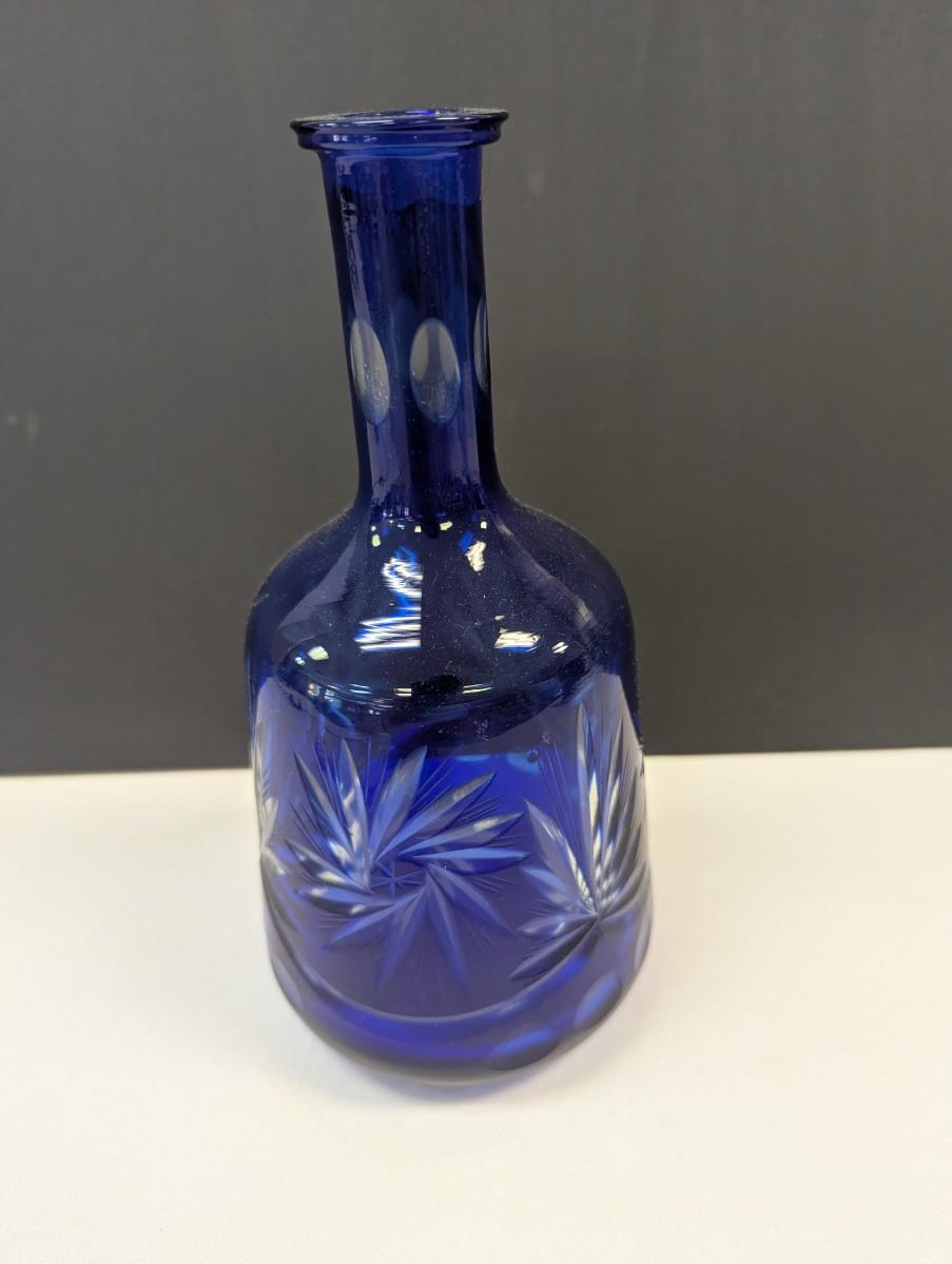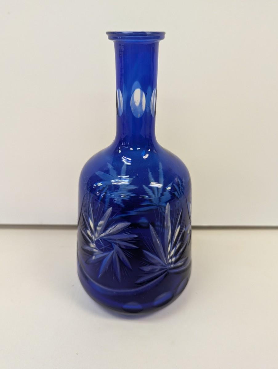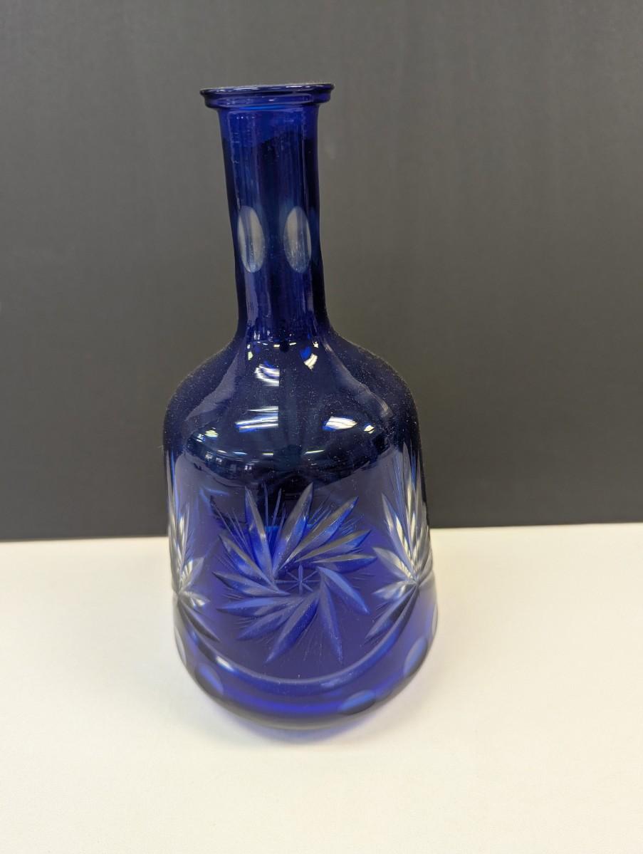 Hand Cut Bohemian Style Crystal Cobalt Blue Vase