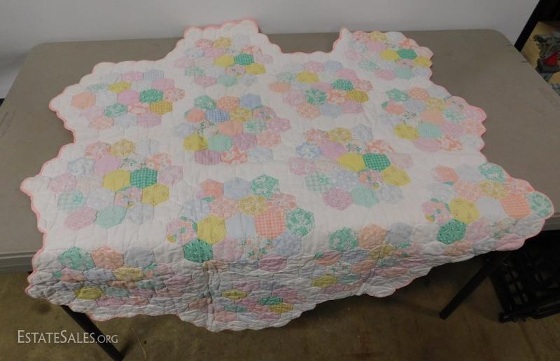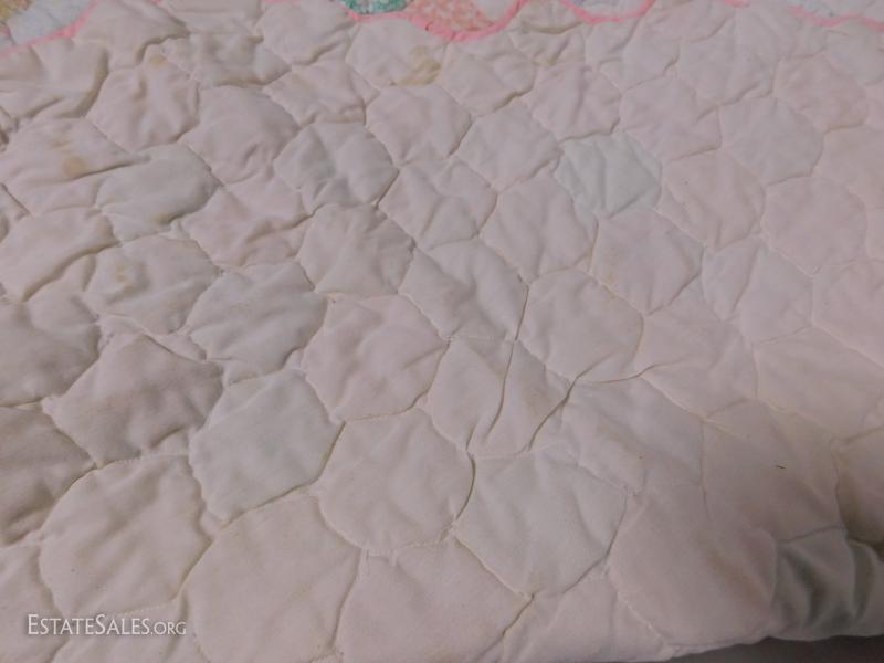 Hand Cut Machine Made Quilted Baby Blanket in good condition. Has unique shape.