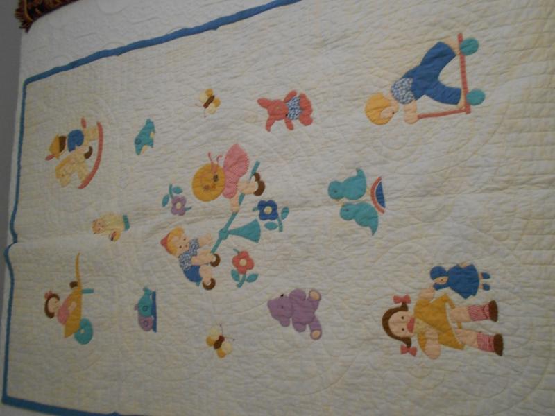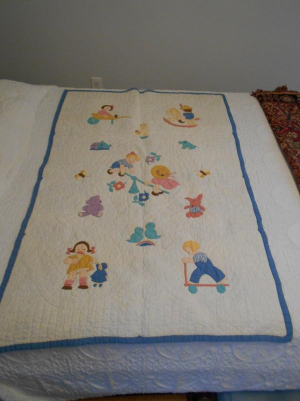Hand Cut, Machine Sewn Crib Quilt in good condition.