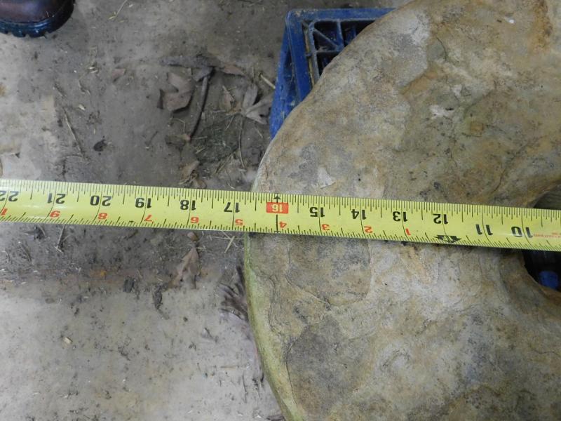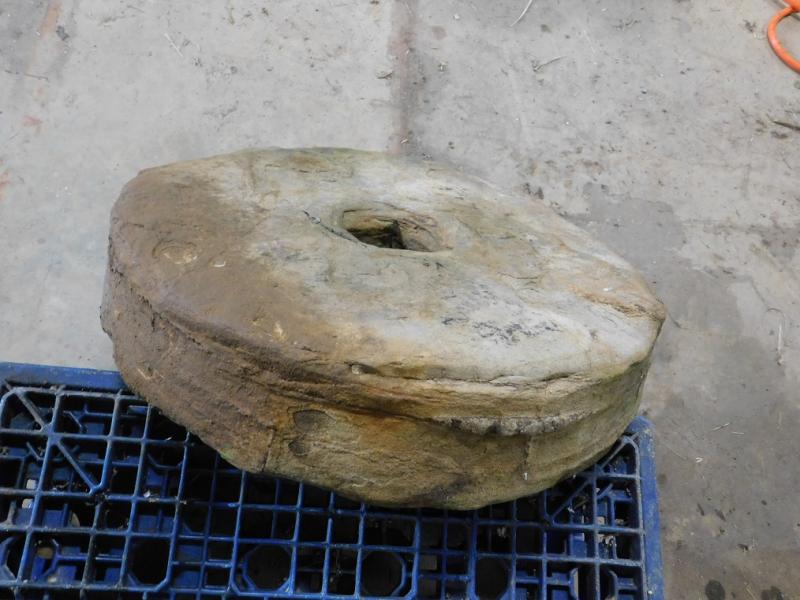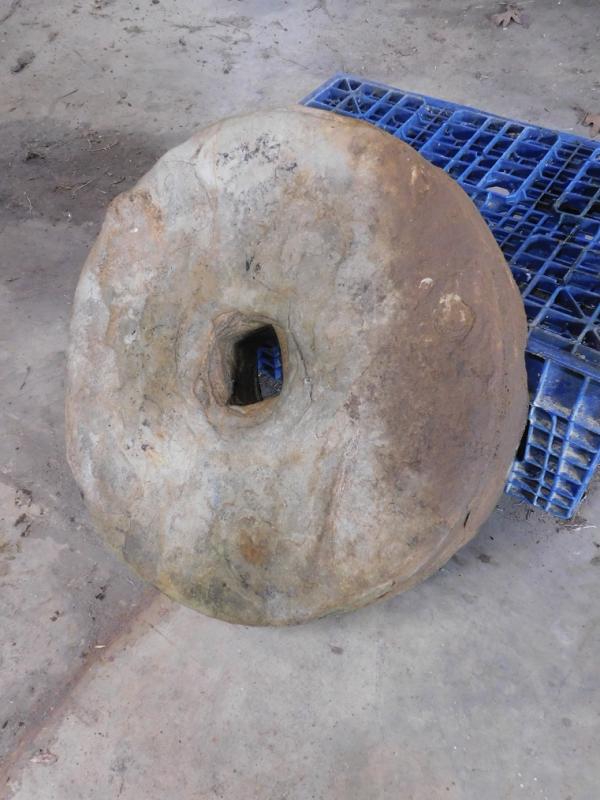 Hand Cut Square Peg Hole Mill Stone 17" Diameter 4" thick.