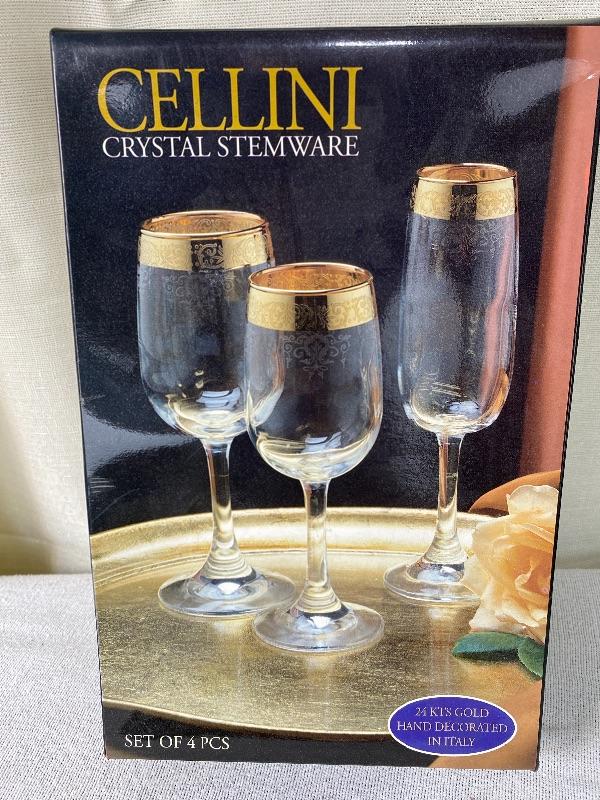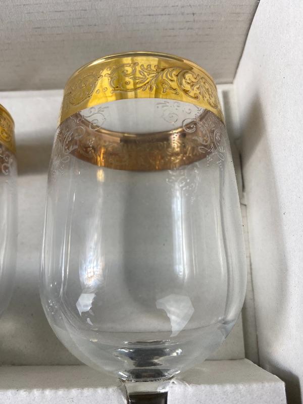 Lot # 250 -Hand Decorated 24k Gold Cellini Crystal Stemware