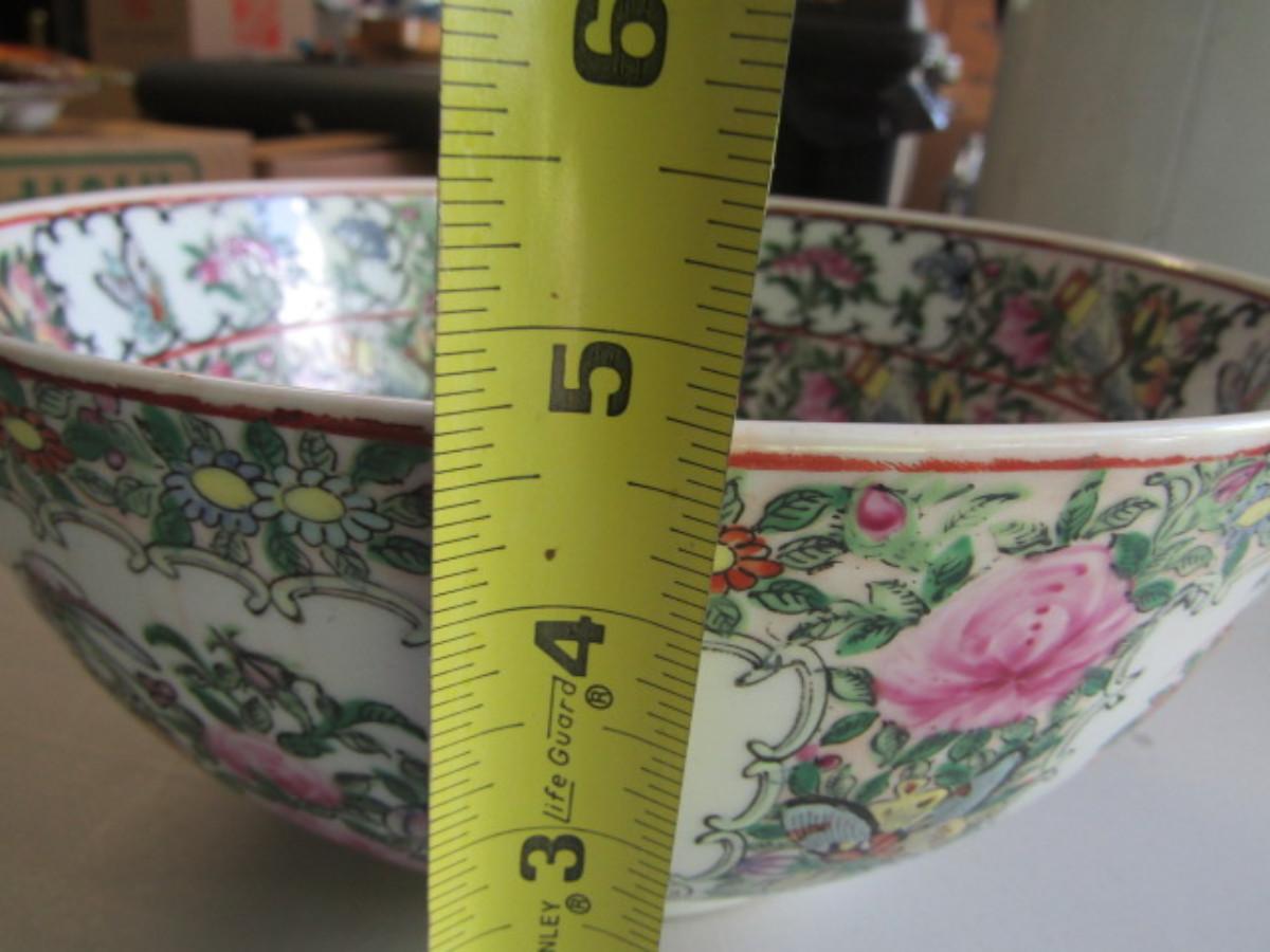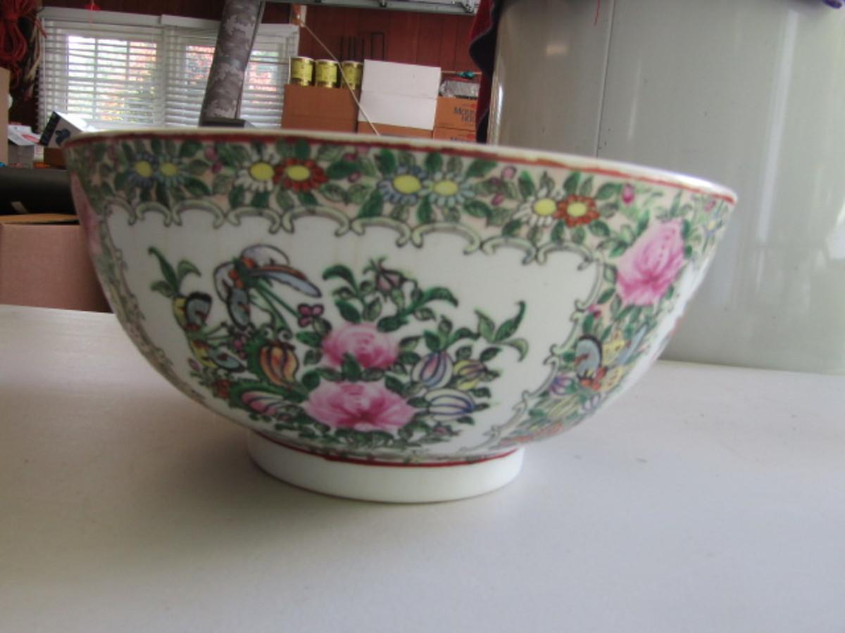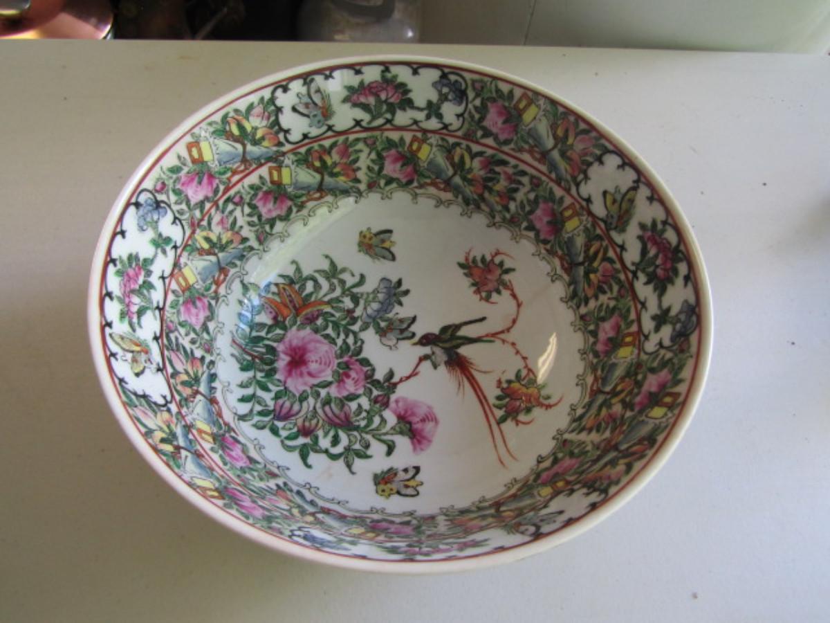 Hand Decorated Asian Design Ceramic Bowl. Approx 10" in diameter.