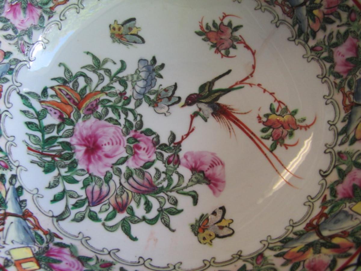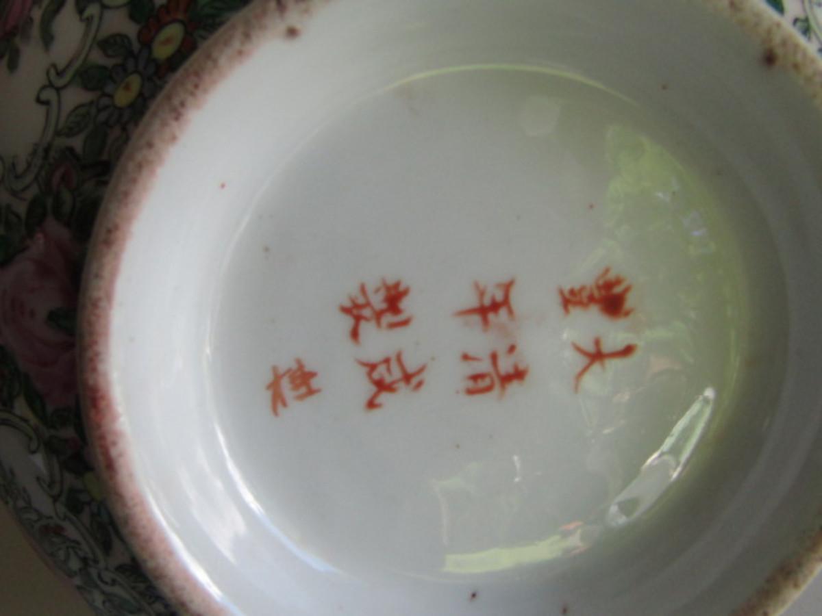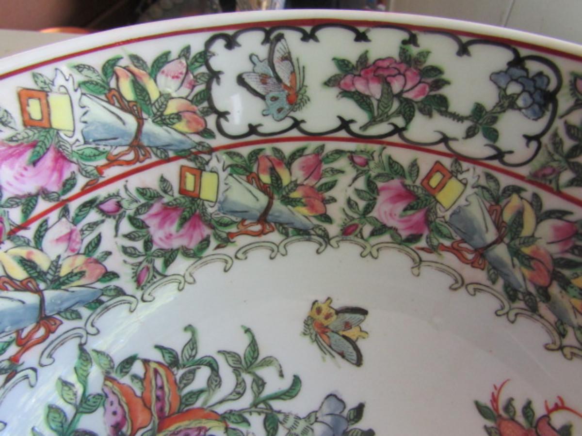 Hand Decorated Asian Design Ceramic Bowl. Approx 10" in diameter.