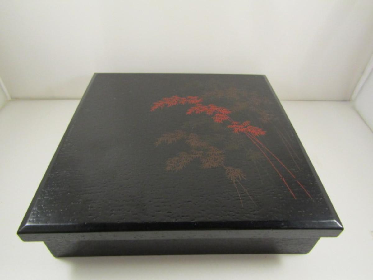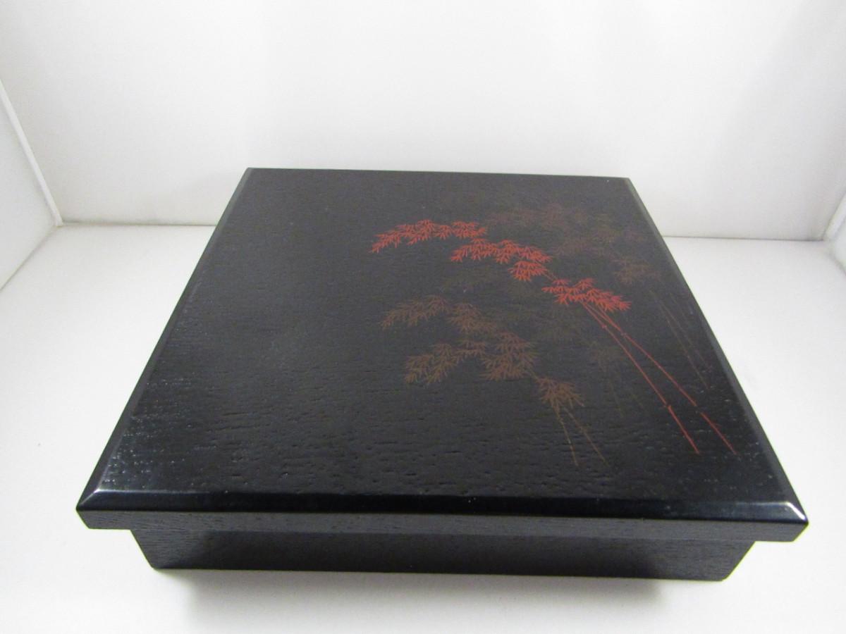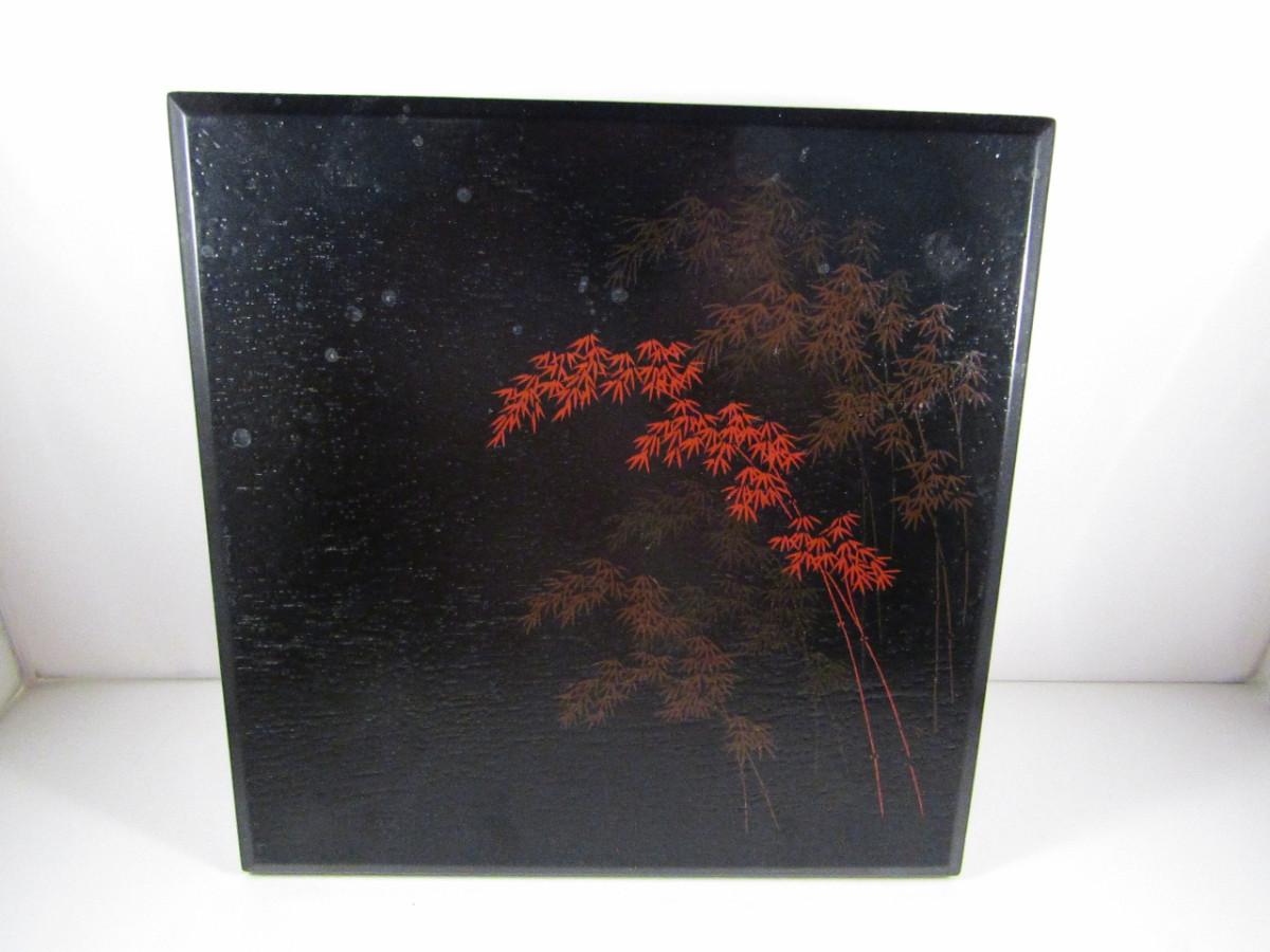 Hand Decorated Lacquered Box with Dividers- Approx 9 3/4" Square, 2 1/4" Deep
