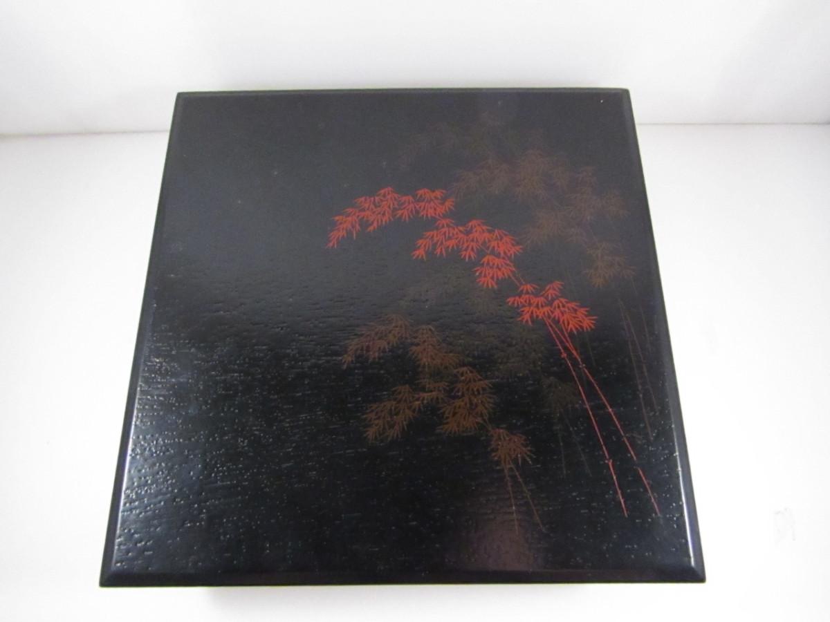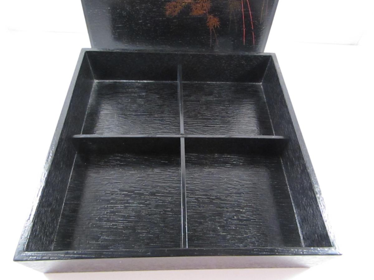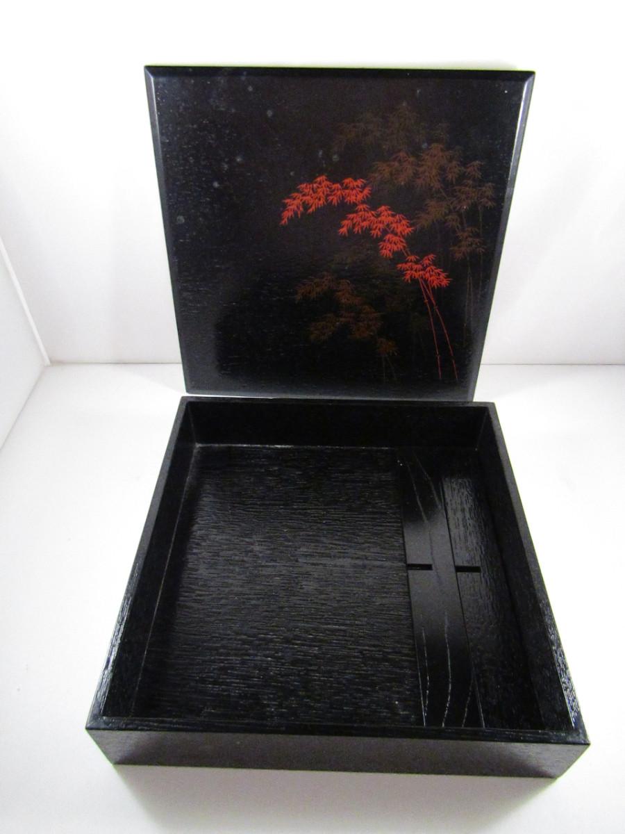 Hand Decorated Lacquered Box with Dividers- Approx 9 3/4" Square, 2 1/4" Deep