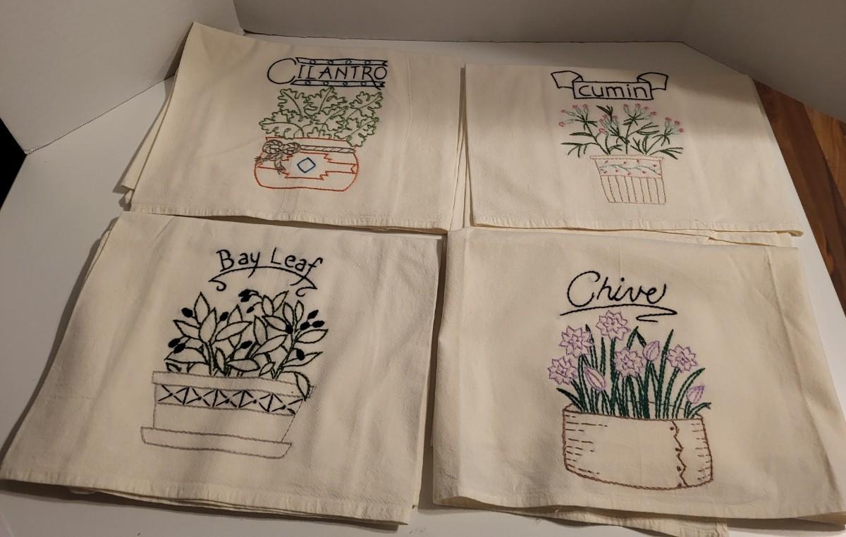 HAND EMBROIDERED FLOUR SACK TEA TOWELS