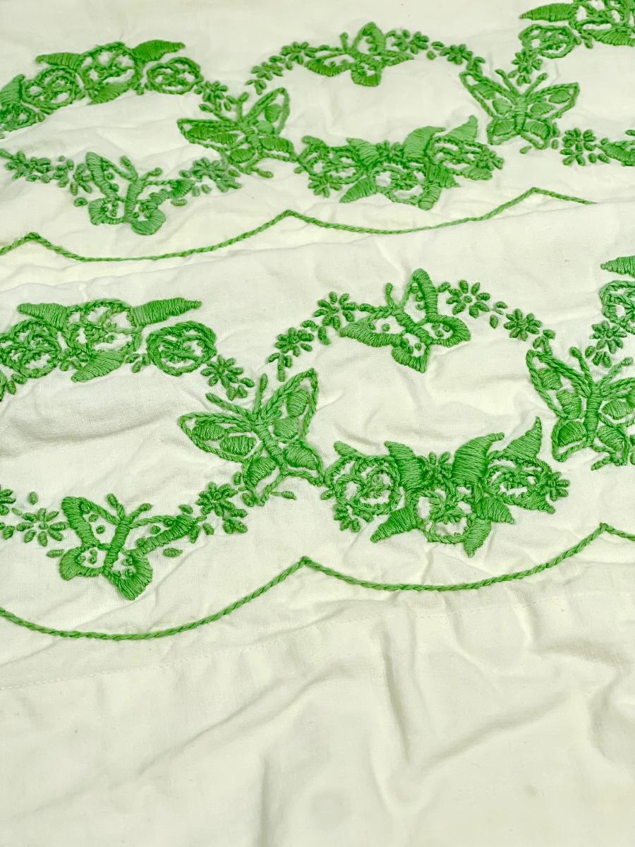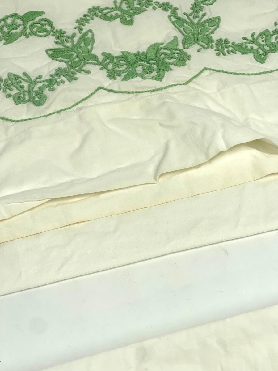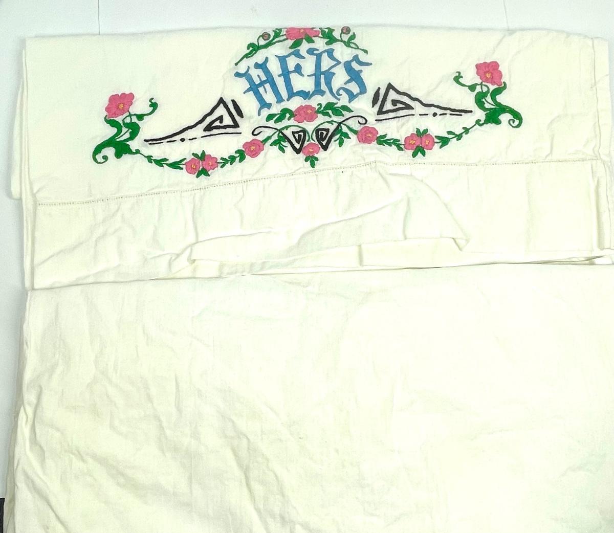 These are just darling! Two sets of pillowcases with marvelous handiwork!! These have some yellowing and show age. Someone may be able to remedy the yellowing. The embroidered parts are in nice condition!