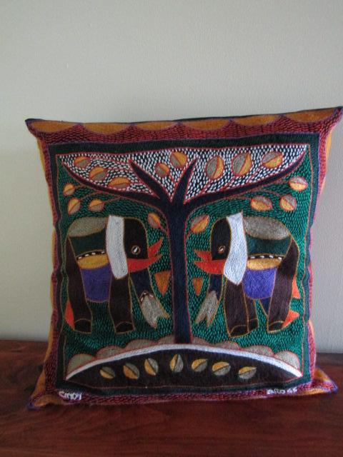 Hand Embroidered South African Decorative Pillow- 16" x 16"