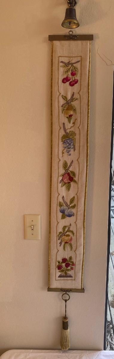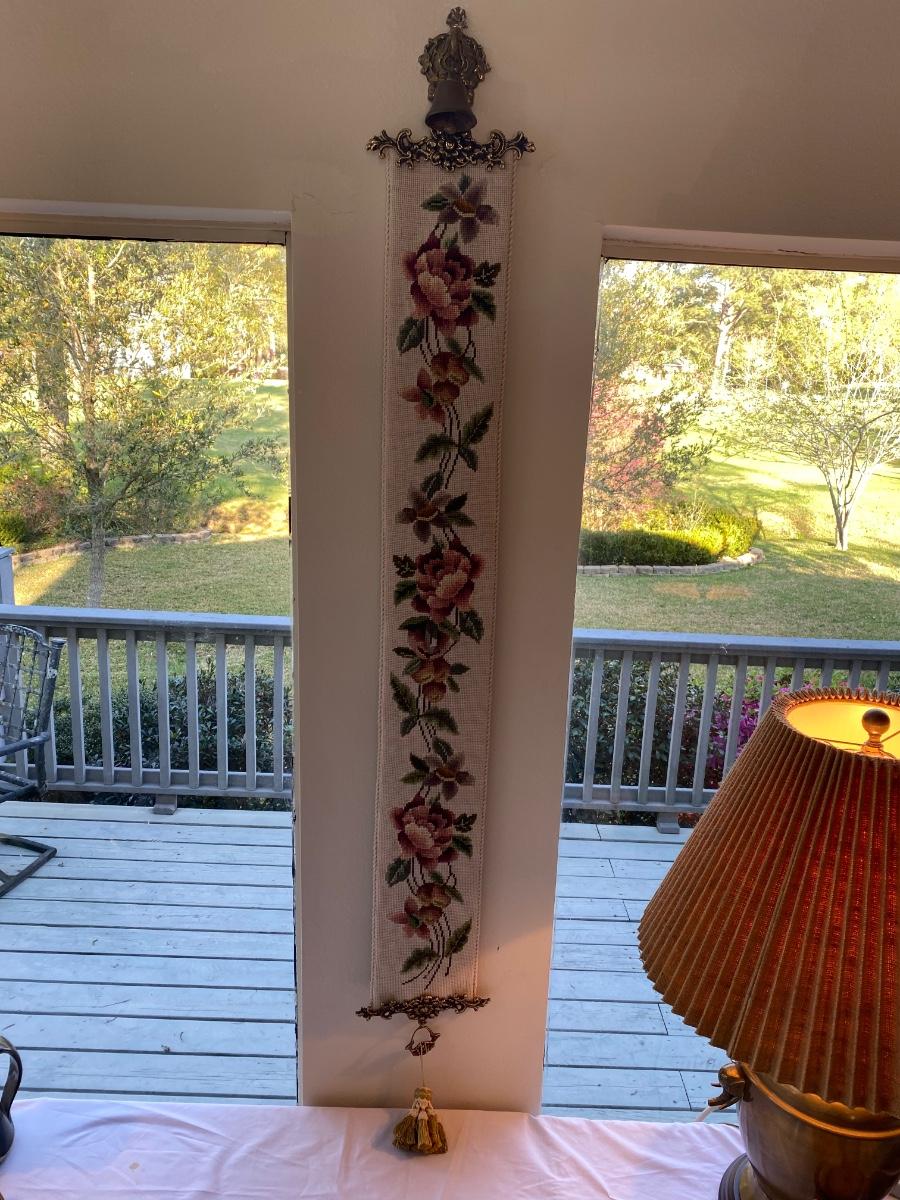 Vintage needlepoint bell pull. Full height is approx 61” x 6w. Embroidered section is 41”. Exc condition