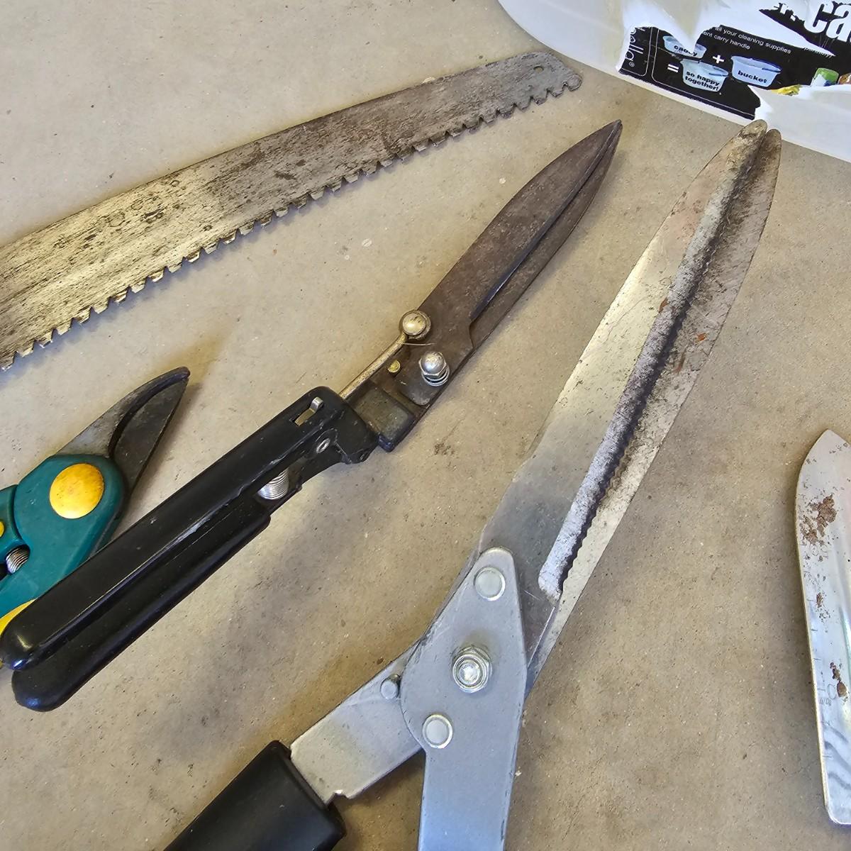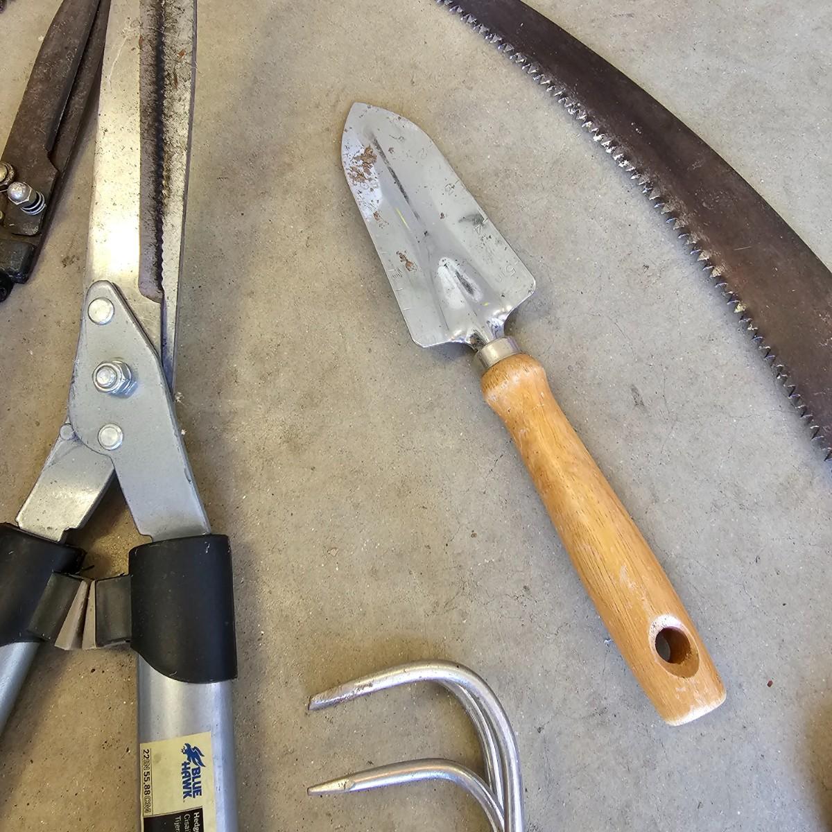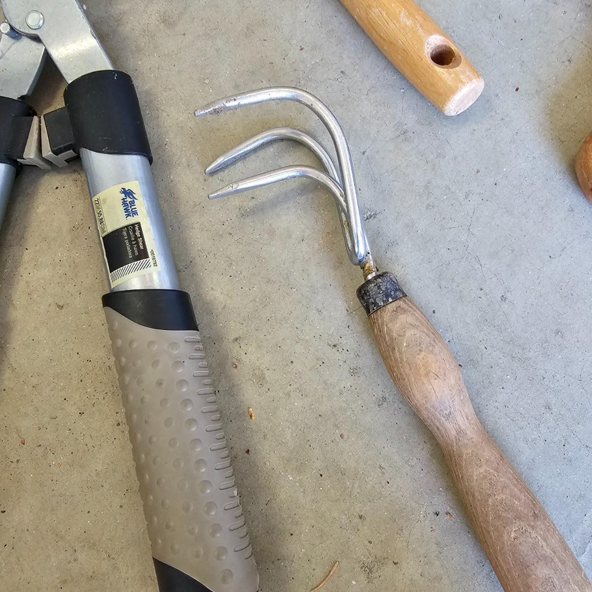 Two saws, rake, trowel, clippers, digger, pruner and a pair of Blue Hawk 8" loppers. Carry caddy included. See photos for details. Shipping available.