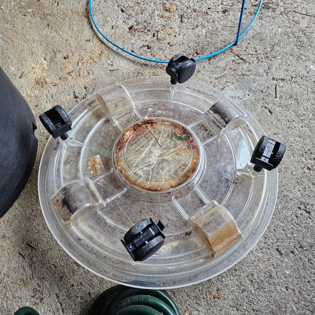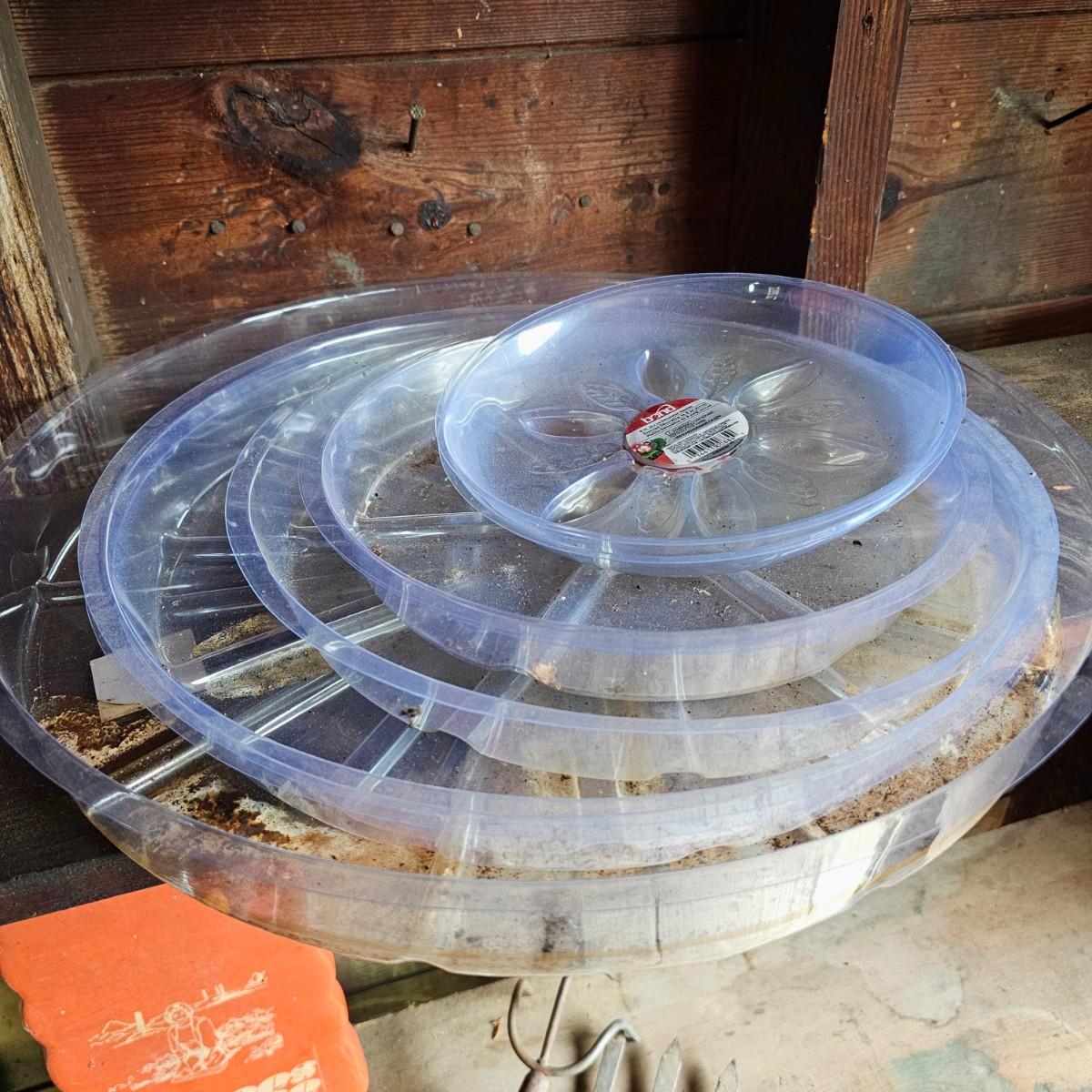Spades, trowels, trimmers, hand hoes and more in this garden lot. Several clear pot bases, 8"D to 17"D. Large plastic planter, 17"D x 12"H. Four watering cans measure 17" to 19" and 15"H. Pink carryall is 11" x 17"'x 10"H. All items well used, prunes need some oil and TLC. See photos for details. Local pickup only.