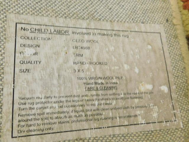 Hand Hooked Wool Area Rug 3'x5'