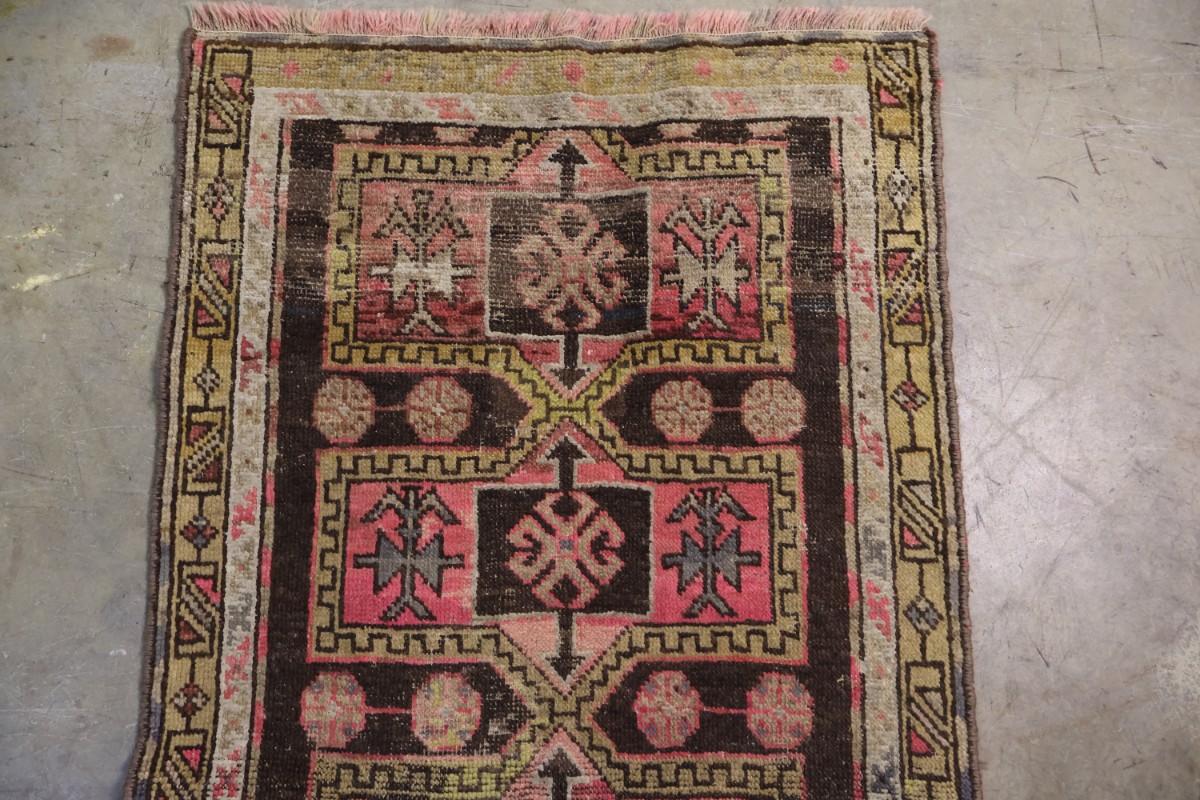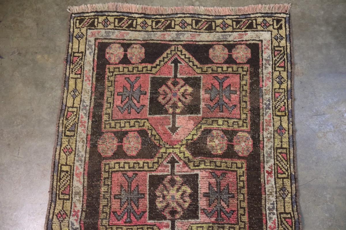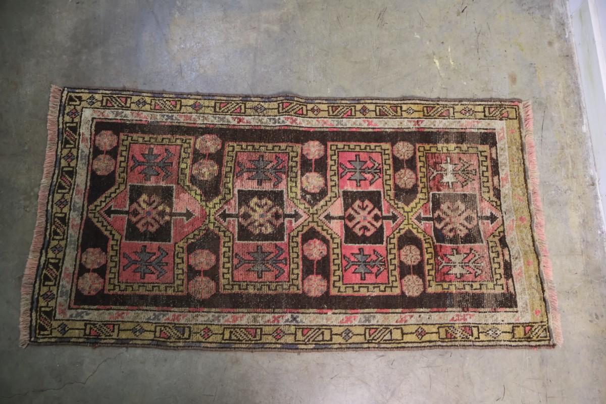 Hand knotted Caucasian wool area rug. Wool foundation and wool pile. 27 1/2" x 53".