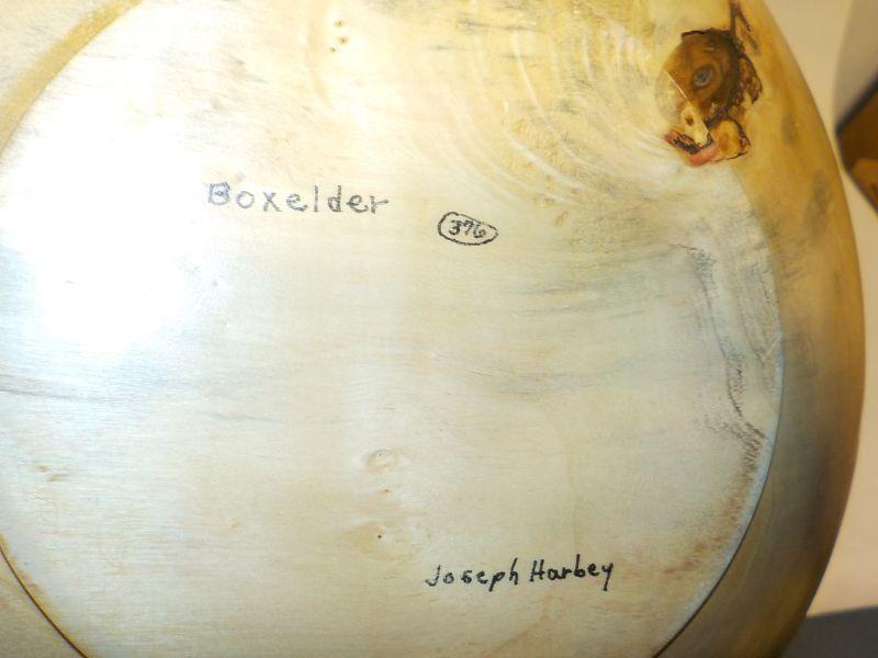 stunning color and design. and signed Joseph Harbey bowl, hand-turned in box elder. Signed on bottom.