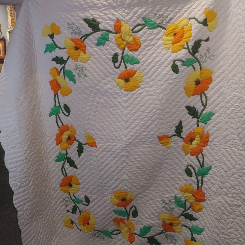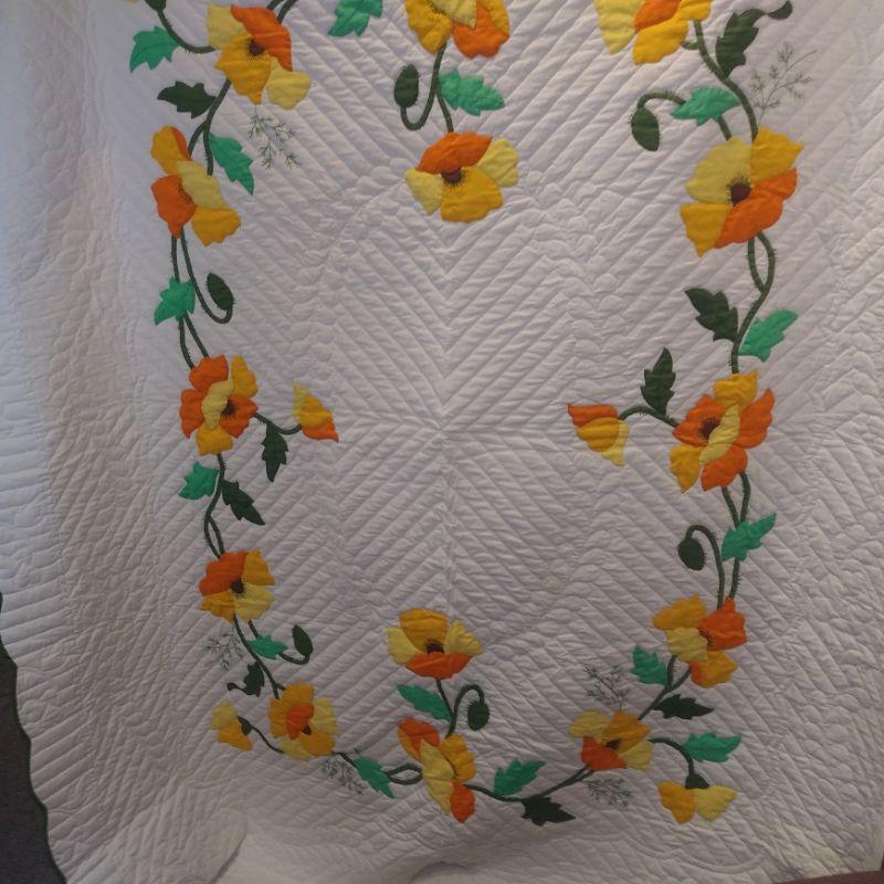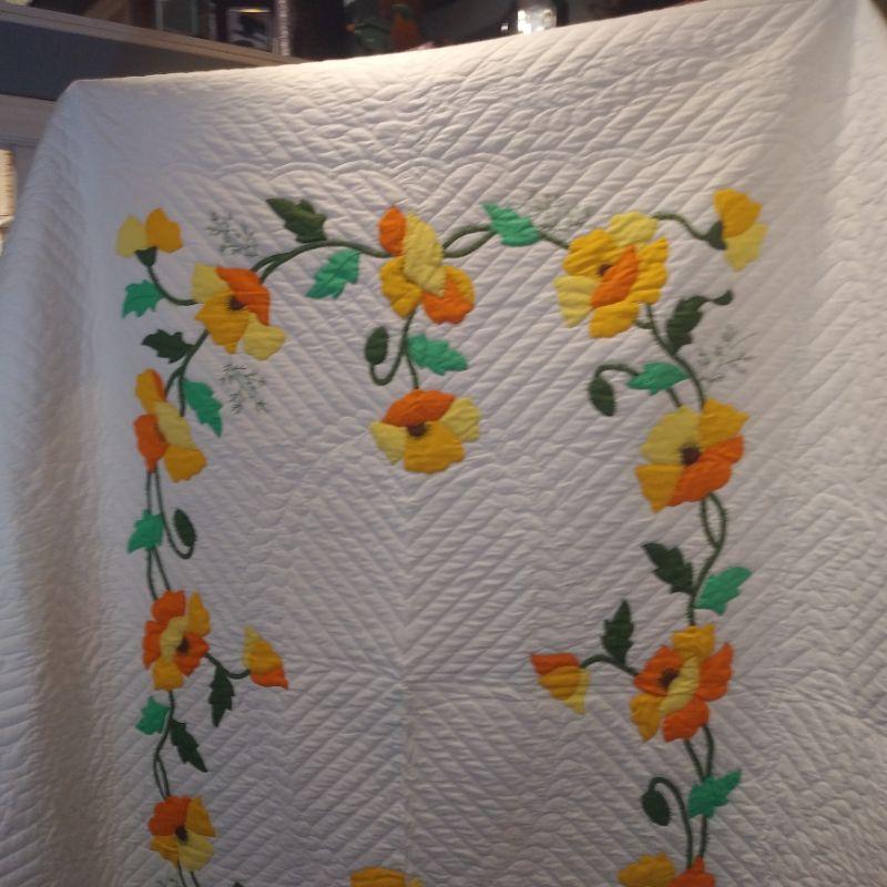 This is a very beautiful hand-made, never used, fresh from the cedar chest, full-sized Vintage Appliqued Quilt. It measures 90-inches X 75-inches. Cotton. Very good condition. If your grandmother didn't make you one - here it is! Don't miss this treasure. Selling regardless of final price after the $5 start fee.