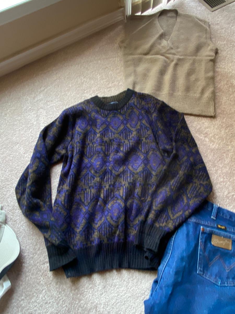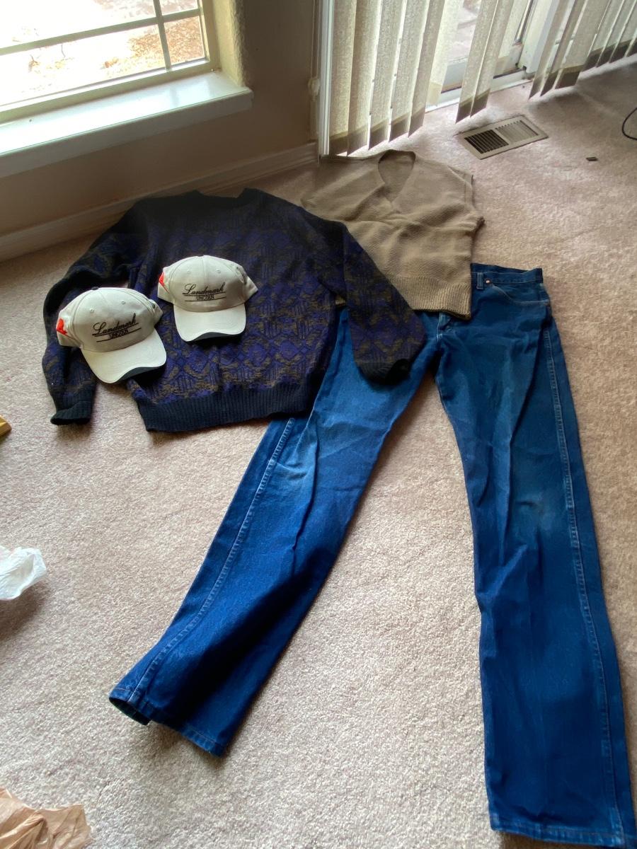 MENS WRANGLER JEANS, SWEATERS AND BALL CAPS