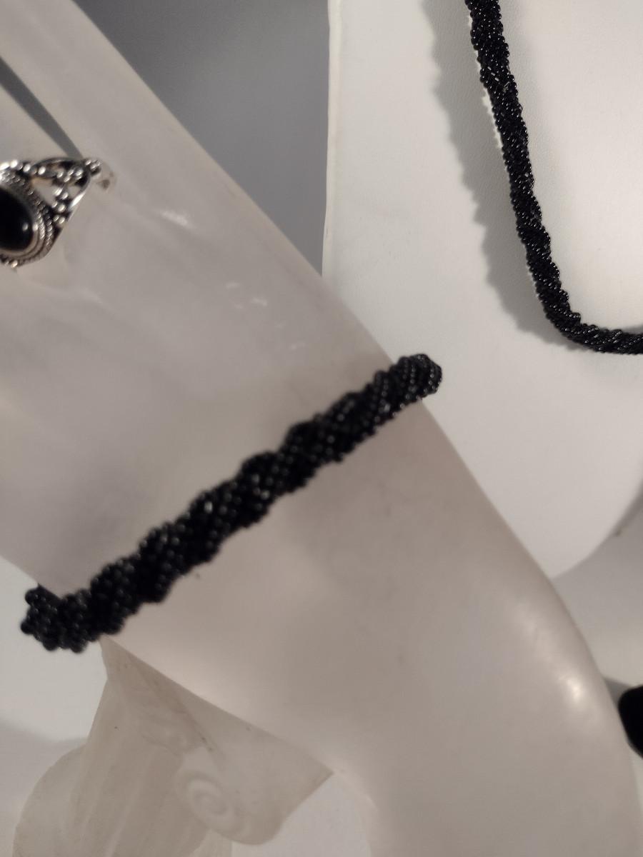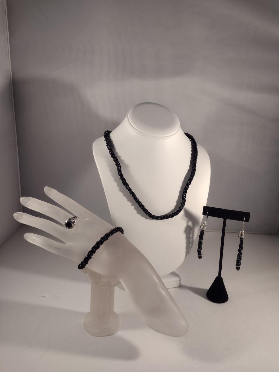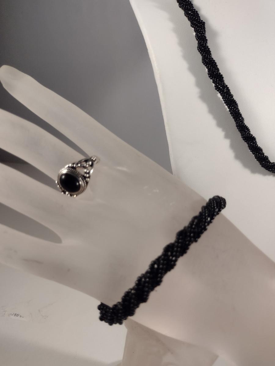 Hand Made Black Seed Bead Jewelry Set and Ring (#20)