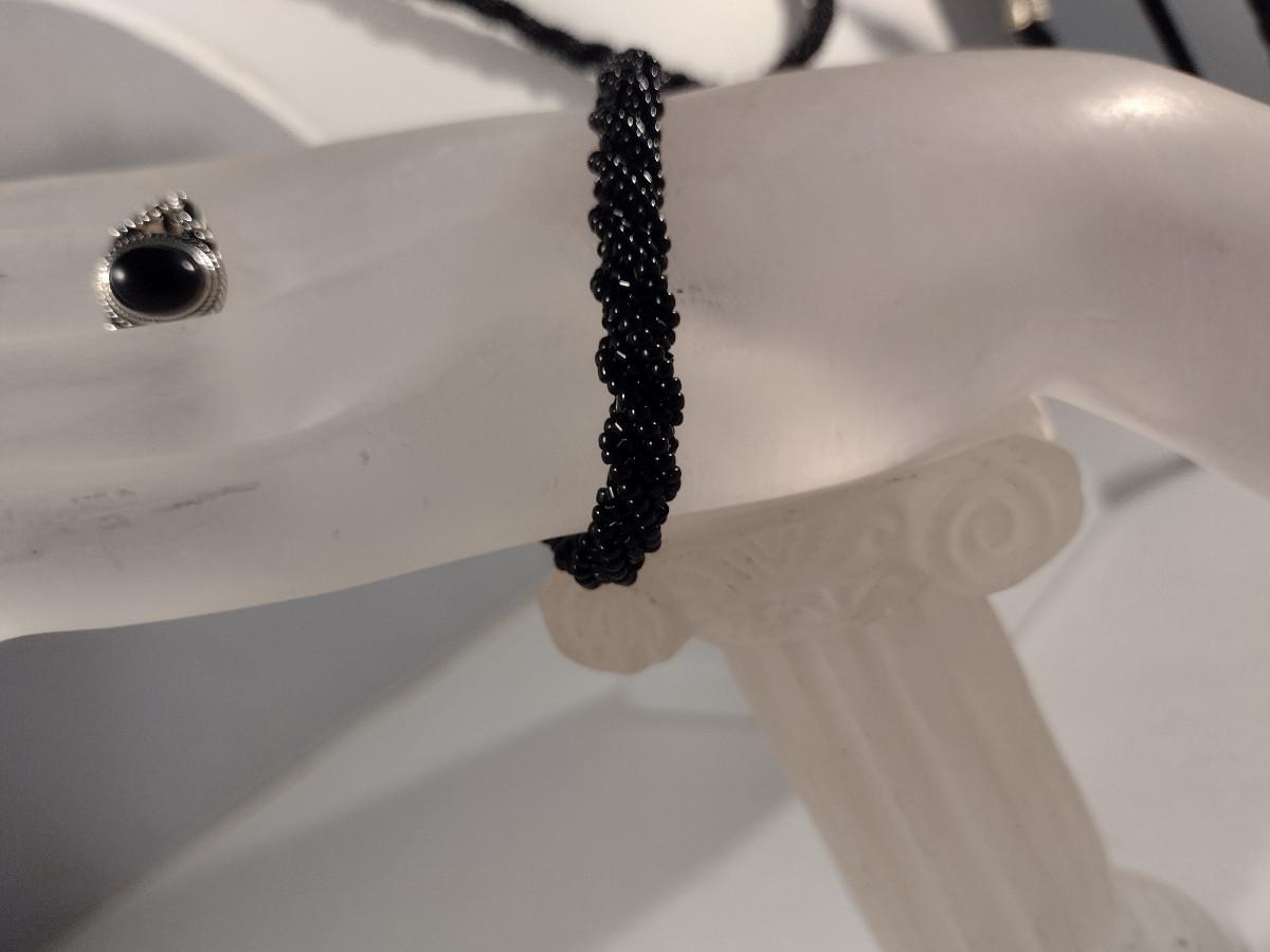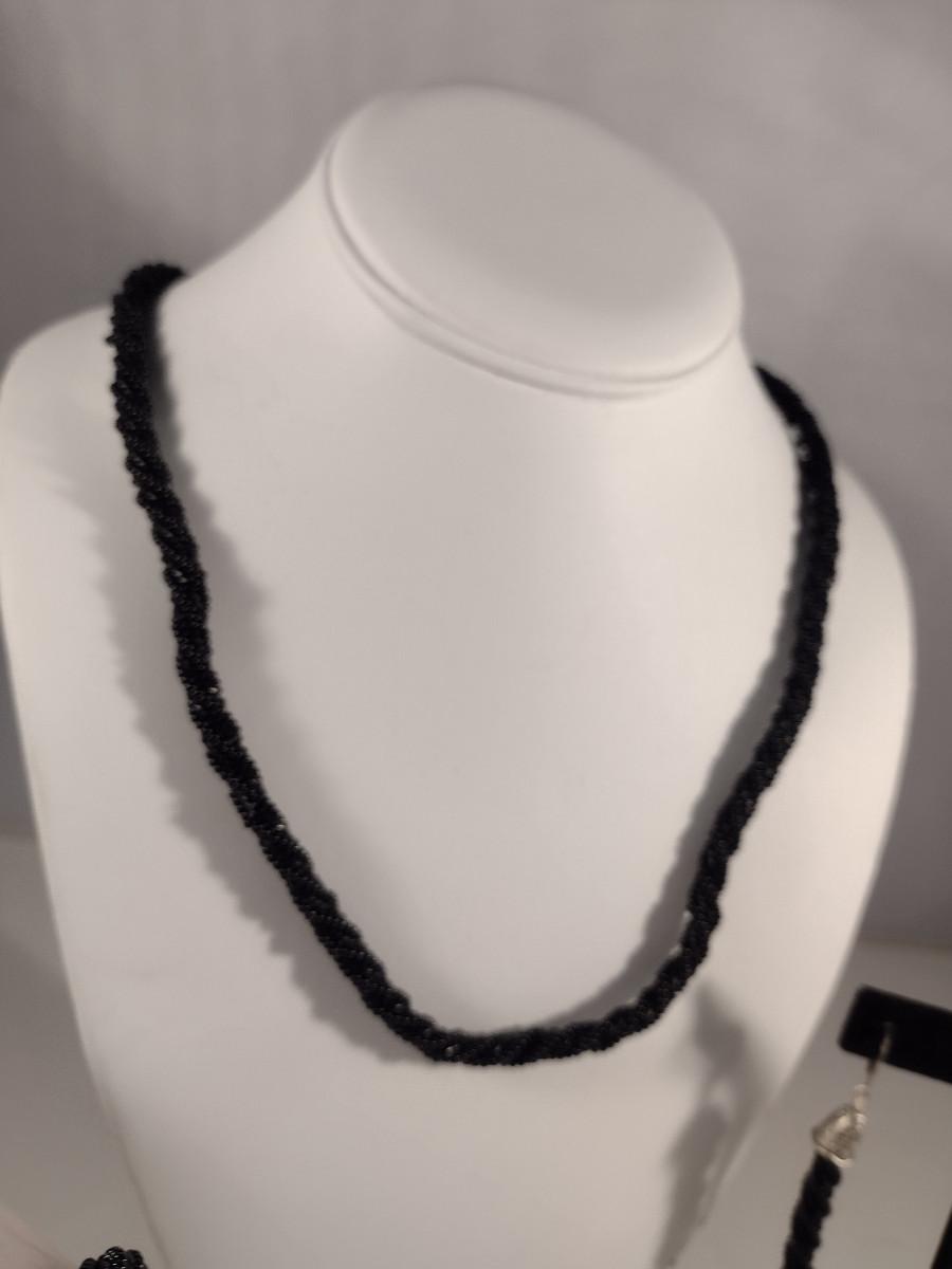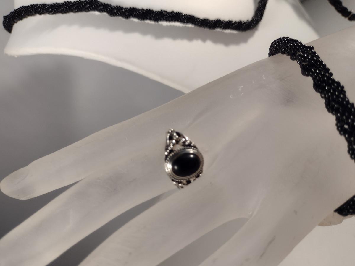 Hand Made Black Seed Bead Jewelry Set and Ring (#20)