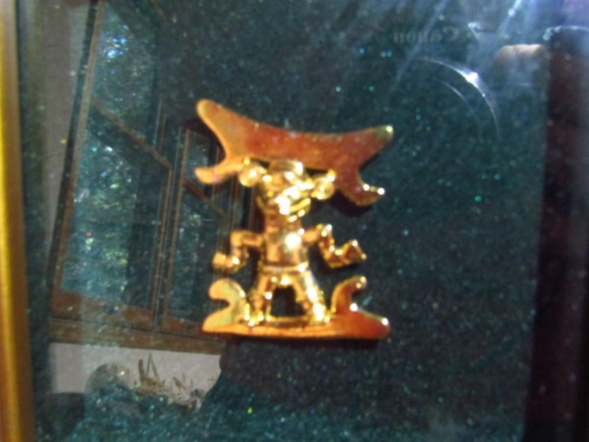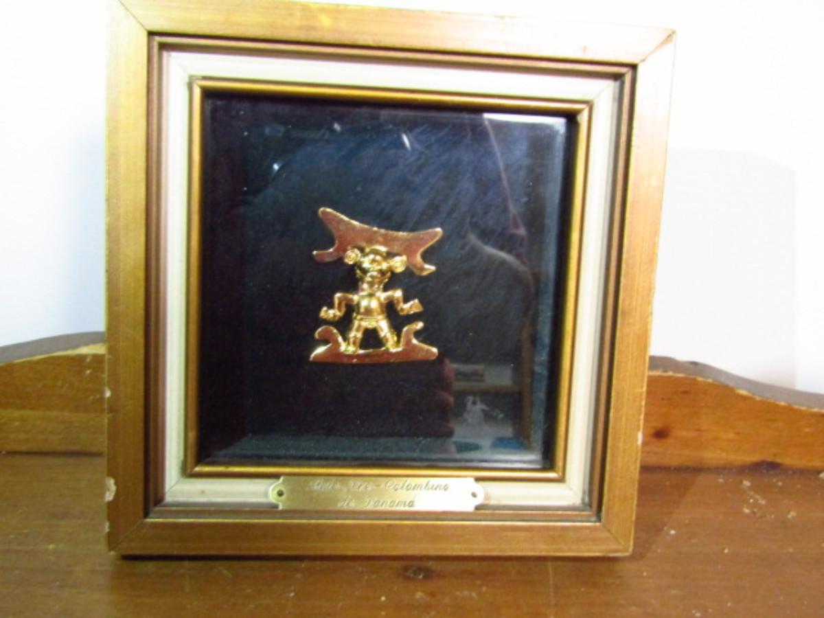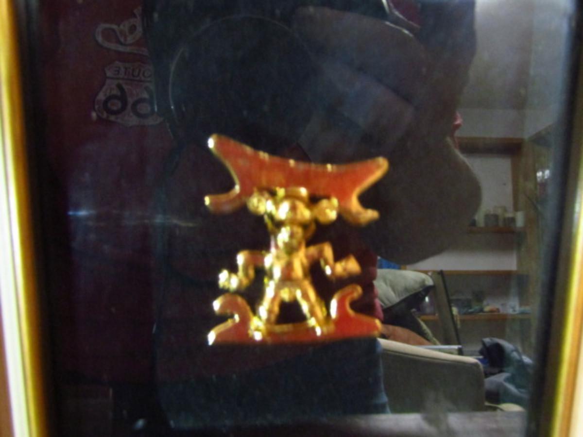 Hand Made by Reprosa- Arte Pre Colombino de Panama-24 KT Gold Over Sterling Silver. In shadow box display.