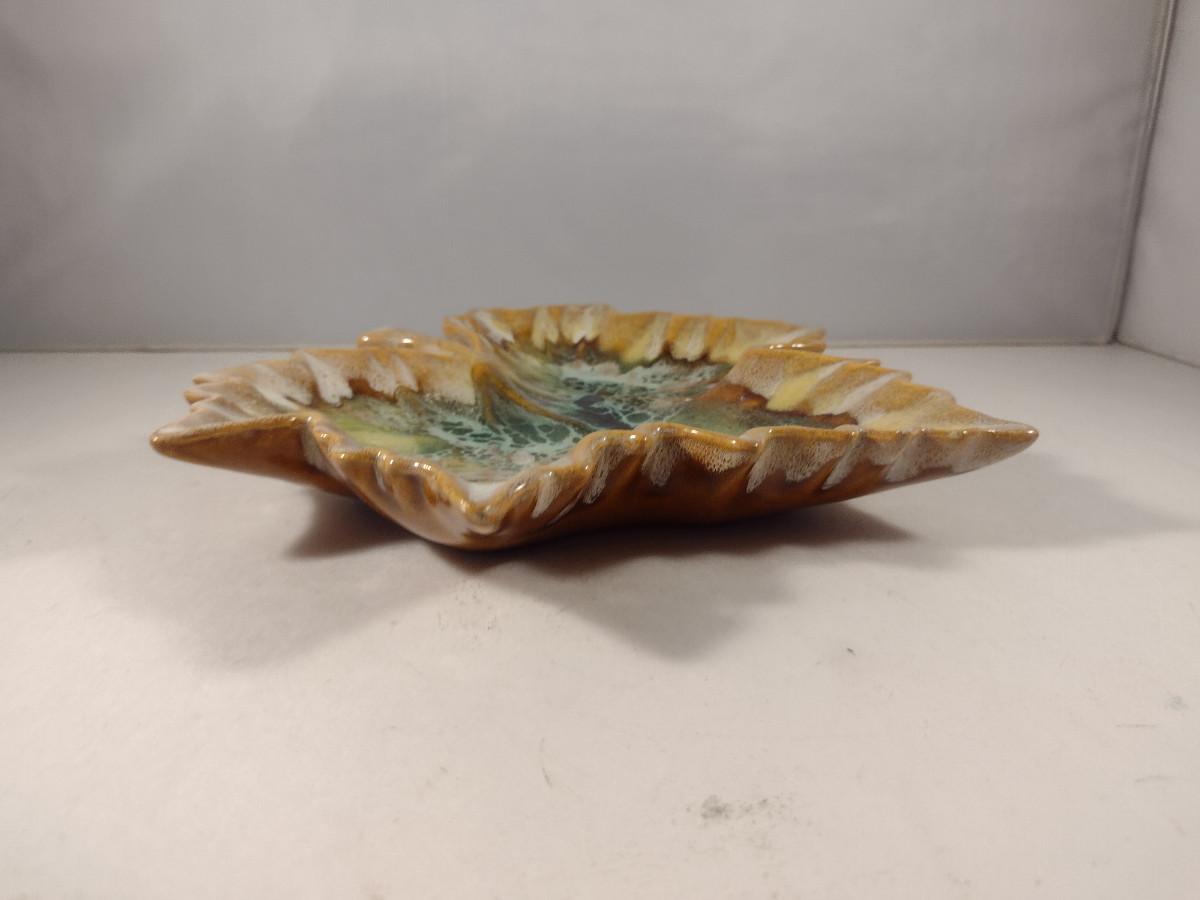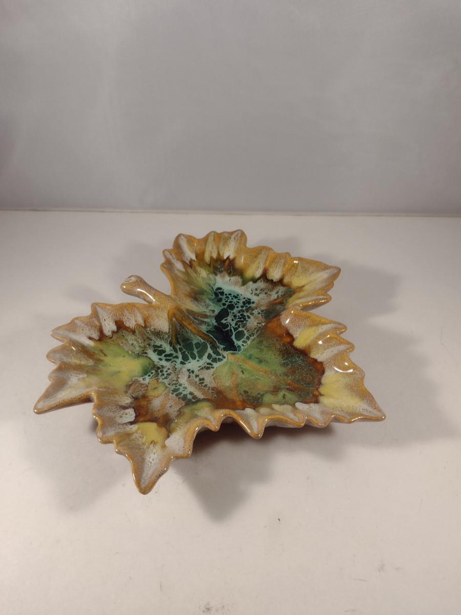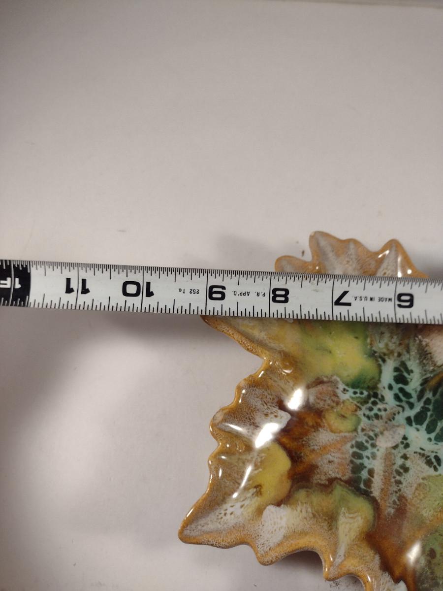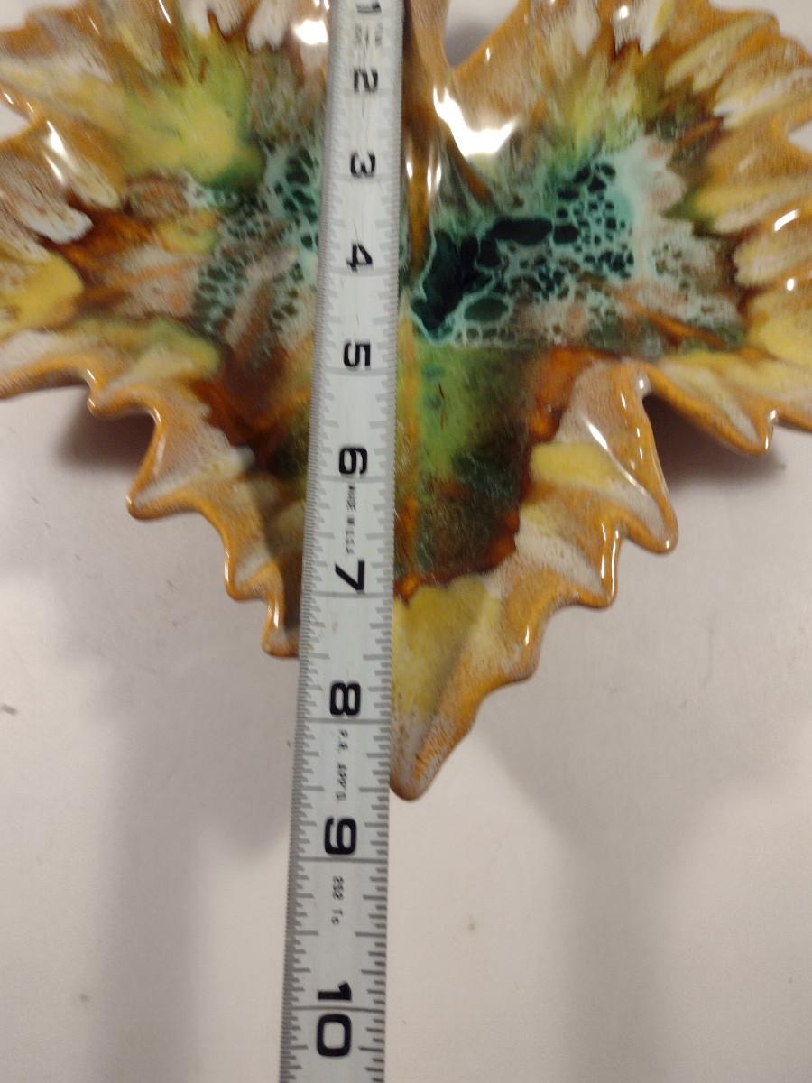 Hand Made Glazed Ceramic Leaf Shaped Dish- Signed by Artist- Approx 8 1/2" x 9"