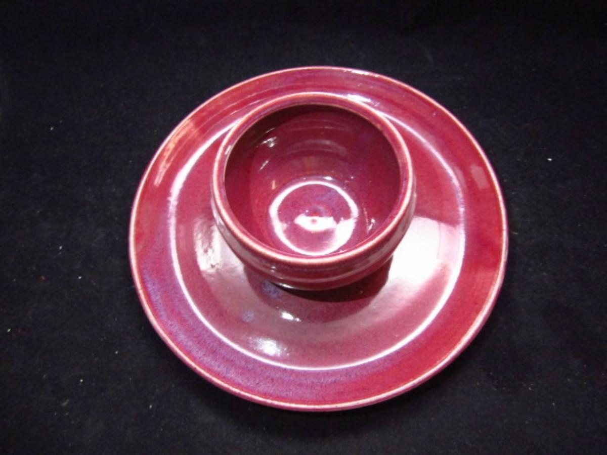 Hand Made Glazed Pottery Chip and Dip Tray by Kenneth Beam (#411)