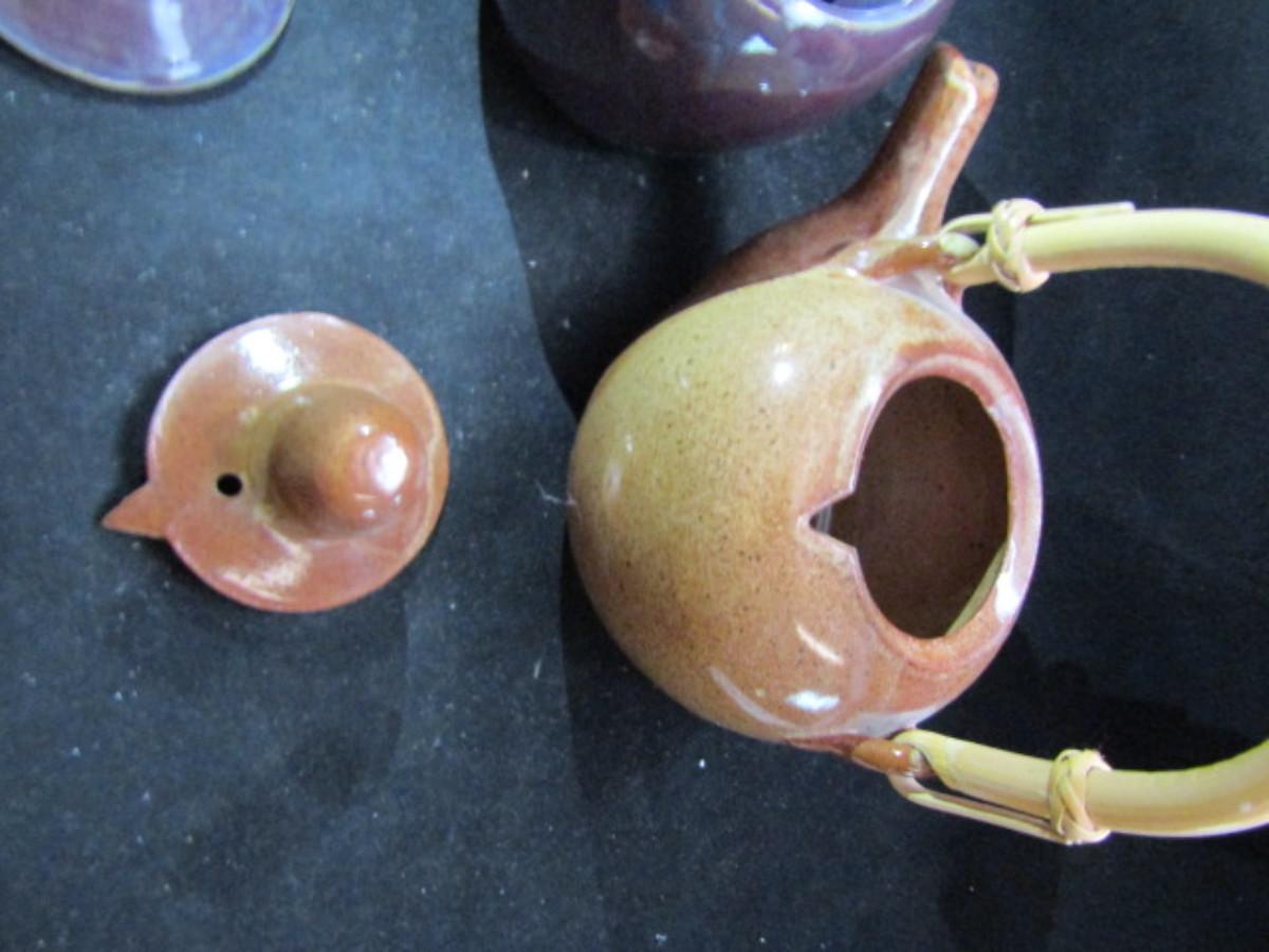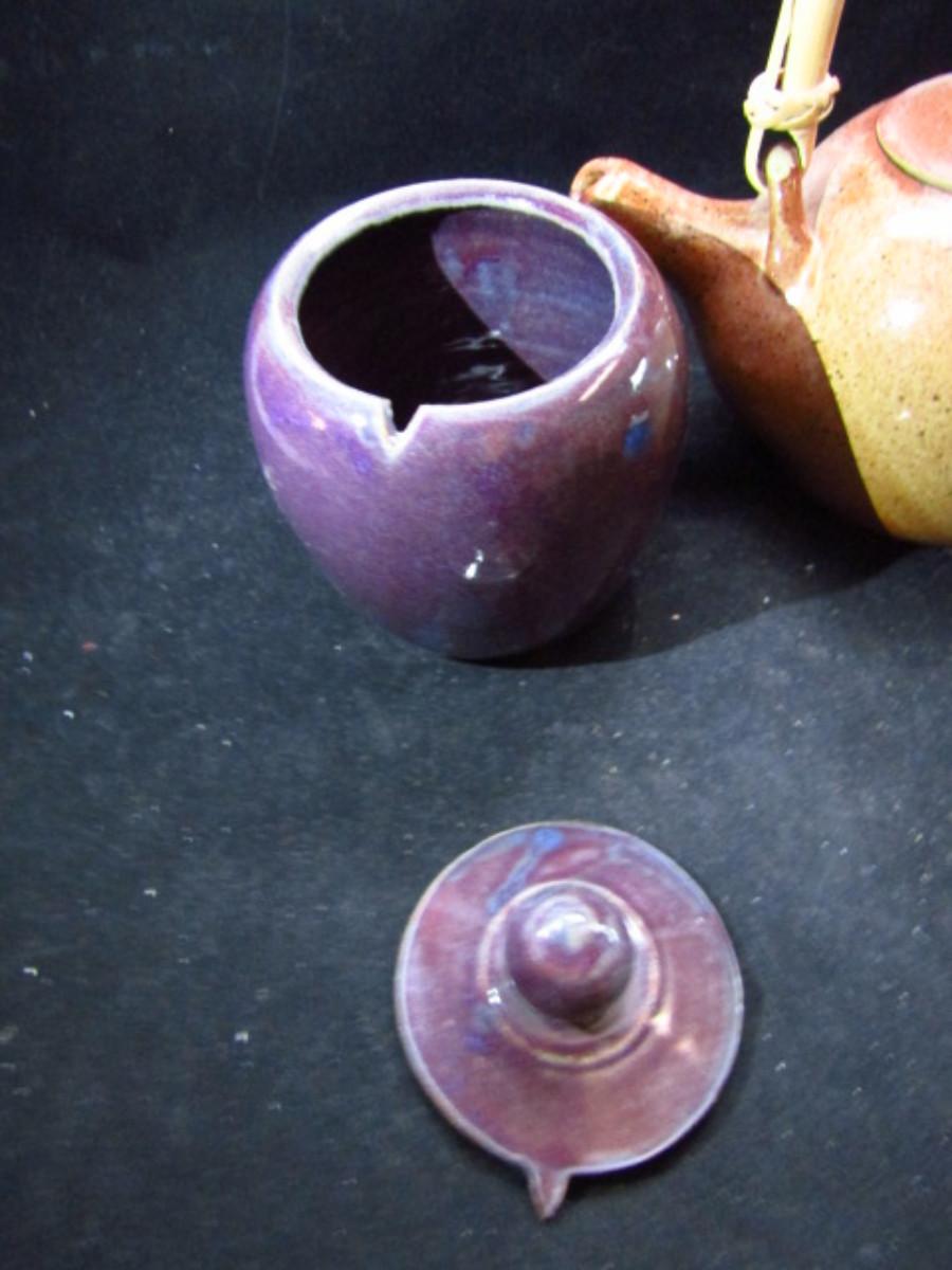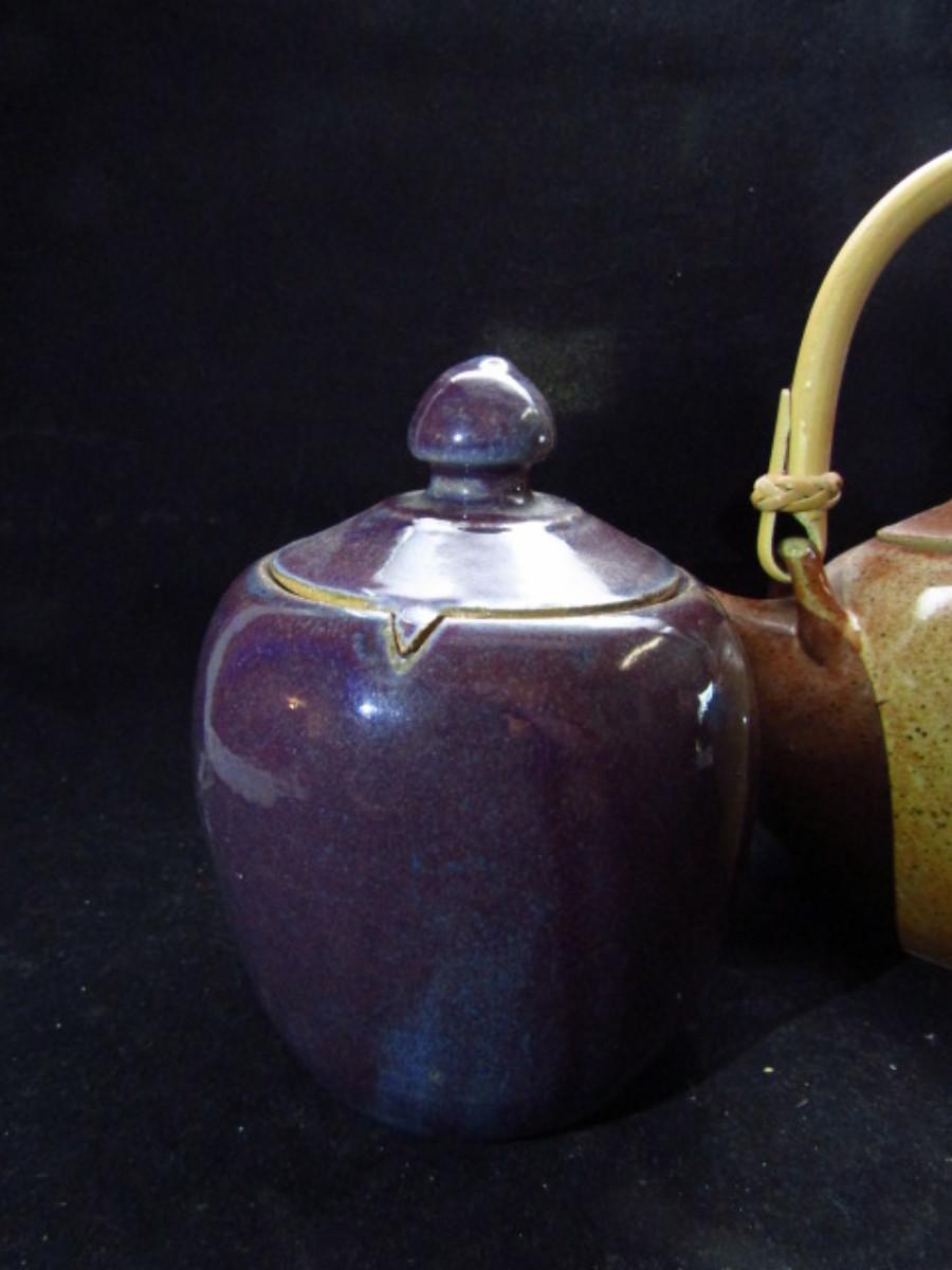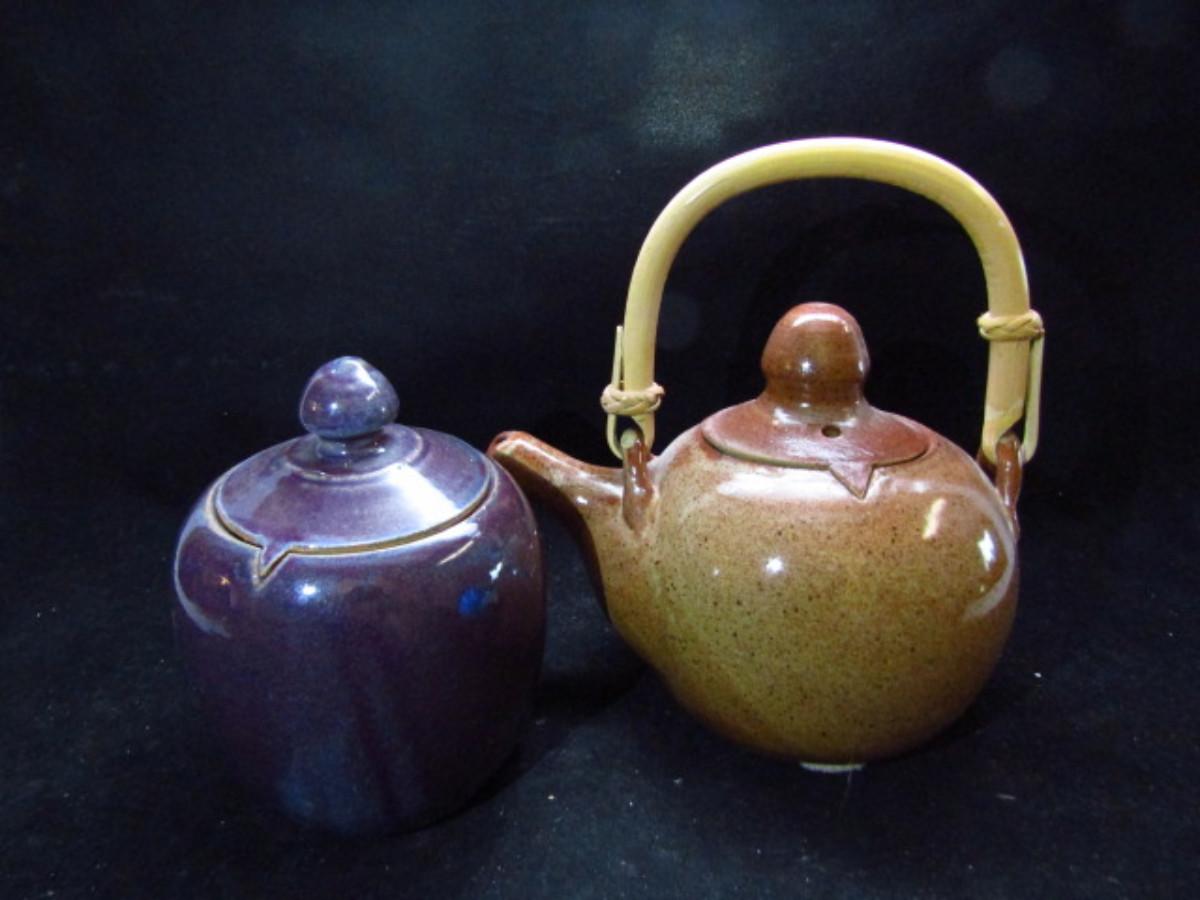 Hand Made Glazed Pottery by Kenneth Beam- Teapot and Covered Sugar Bowl (#414)