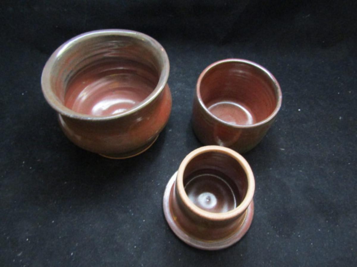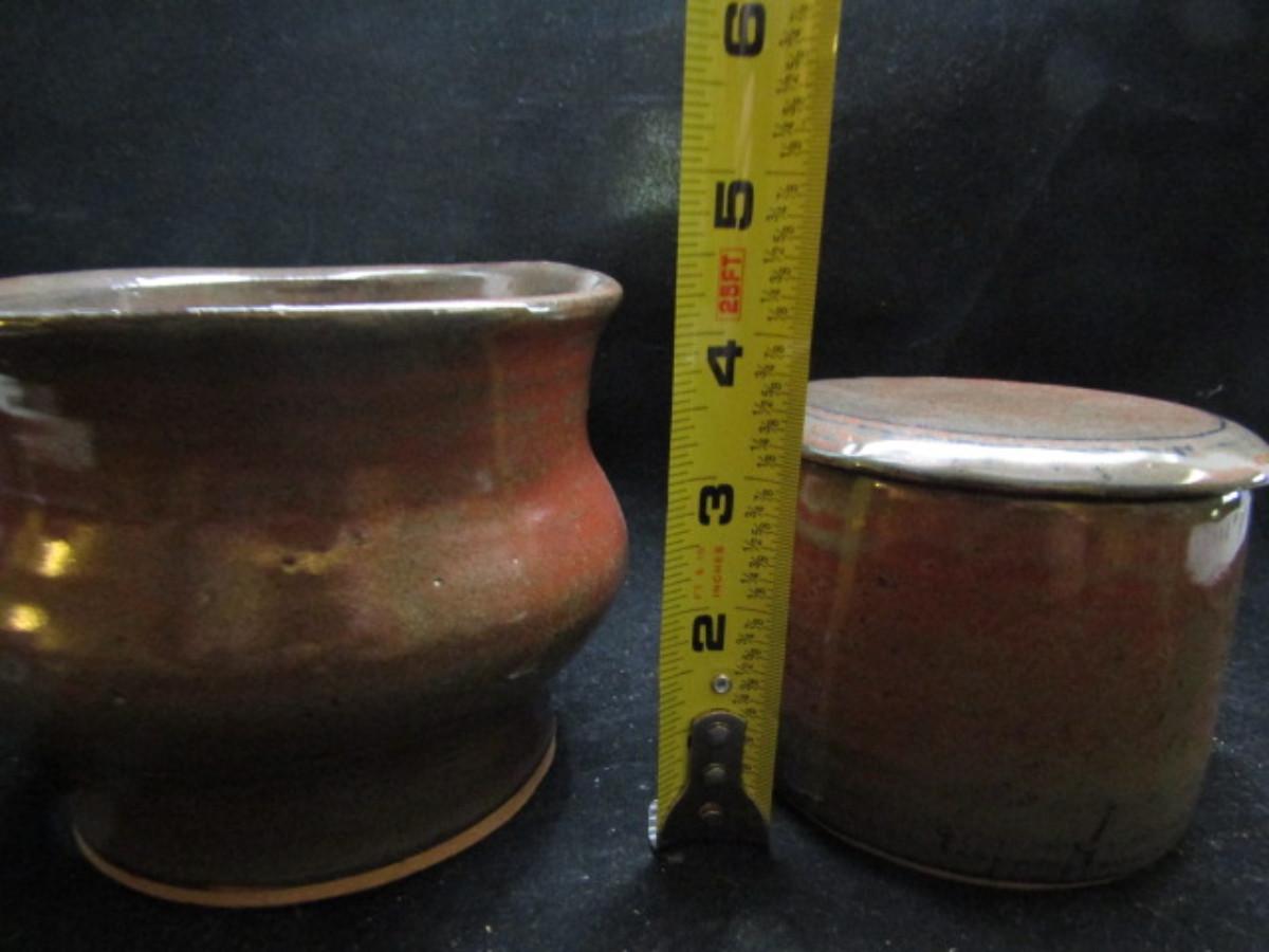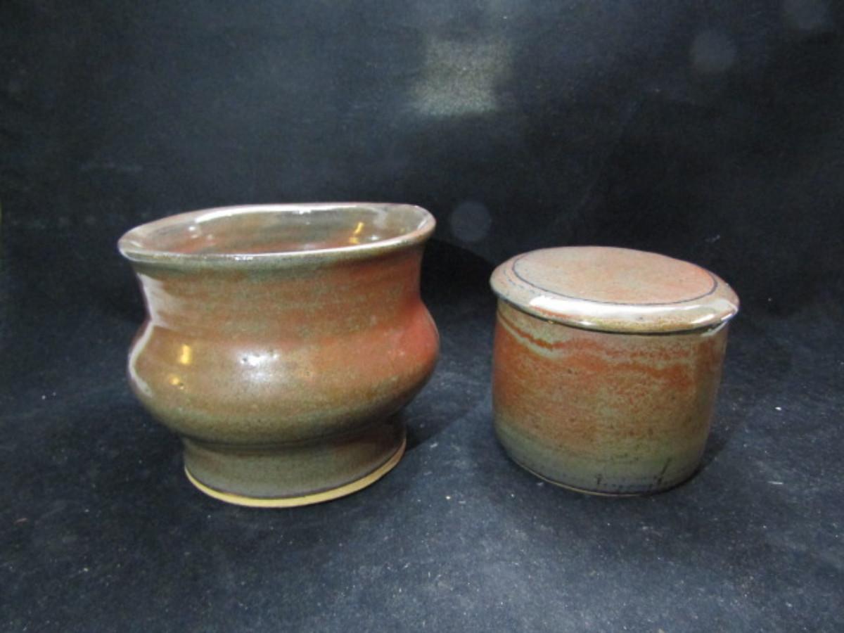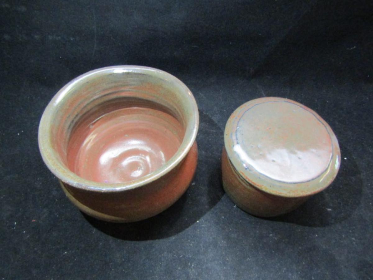 Hand Made Glazed Pottery by Kenneth Beam- Bowl and Butter Bell (#415)