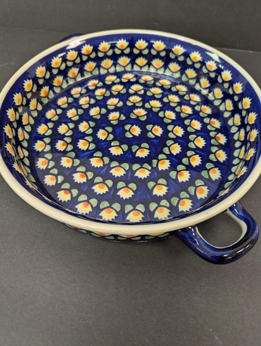 Polish Pottery Hand Made Round Baking Dish- Approx 9 1/2" in Diameter