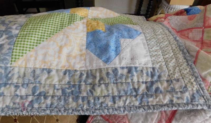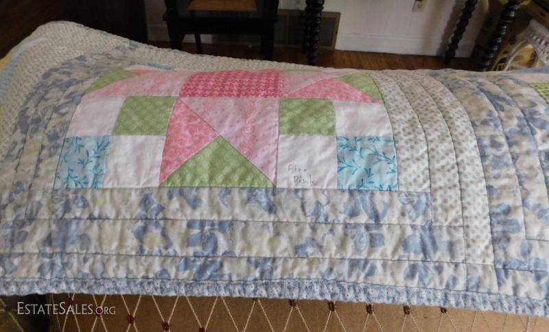 Hand Made Machine Quilted Carolina Wildflower Quilt 53" Square in Size